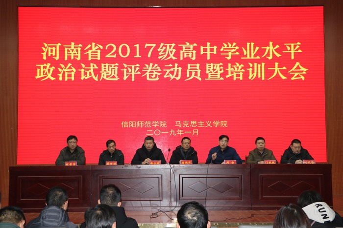 1月8日下午,德赢官网在逸夫楼报告厅召开河南省2017级高中学业水平考试政治试题评卷动员暨培训大会。学院党委书记唐国战,党委副书记徐永新、何晓坚,副院长周智、黄世明、程晋富,当代马克思主义研究所副所长门献敏出席会议,200余名评卷人员参加了动员大会。大会由周智主持。