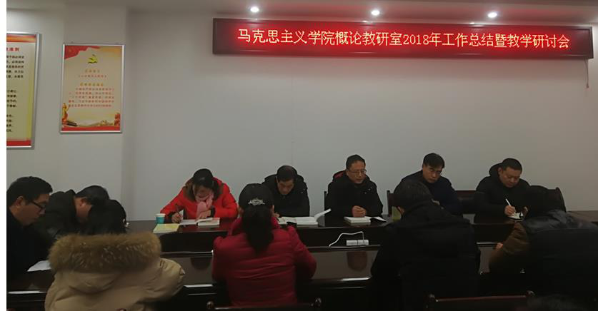 胡春湘对学院领导一直以来对教研室工作的关心和大力支持表示感谢,总结汇报了教研室2018年各项工作,主要包括做好概论课教学工作、完成好学院安排的教育部本科教学审核评估工作、积极参加省高校思想政治理论课教学技能竞赛、加强优秀基层教学组织建设以及开展好课堂教学改革与研究等,并具体安排了下一年各项工作。随后教研室全体任课教师就新学期“概论”课程教学内容、教学模式及考试方式方法等进行了深入地交流研讨,分解了教学任务,进一步细化了工作目标。