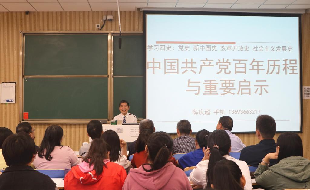 9月27日上午,应德赢AC米兰官网和当代马克思主义研究所邀请,中央党史研究室薛庆超研究员在社科楼515教室为德赢官网师生作了题为“中国共产党百年历程与重要启示”的学术报告。德赢AC米兰官网领导班子成员及学院百余名师生共同聆听了此次报告。报告由当代马克思主义研究所副所长门献敏主持。