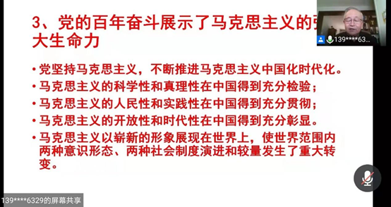 11月30日,应德赢AC米兰官网邀请,中共中央党校(国家行政学院)戴焰军教授在腾讯会议网络平台开展题为“百年奋斗的历史意义和历史经验”专题讲座。德赢AC米兰官网副院长李蕊及部分教师共同聆听此次讲座,讲座由李蕊主持。
