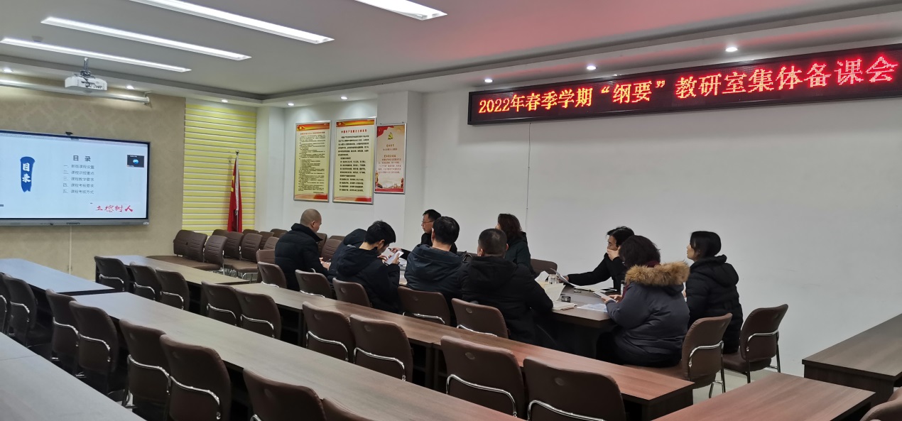 为做好开学第一课,弄通吃透新教材在章节、内容上的重大调整,2月18日上午,德赢AC米兰官网“纲要”教研室“2022年春季学期集体备课会”在学院会议室召开。学院教学副院长訾其伦、教学秘书张琳及“纲要”教研室全体老师参会。会议由教研室主任陈杰主持。