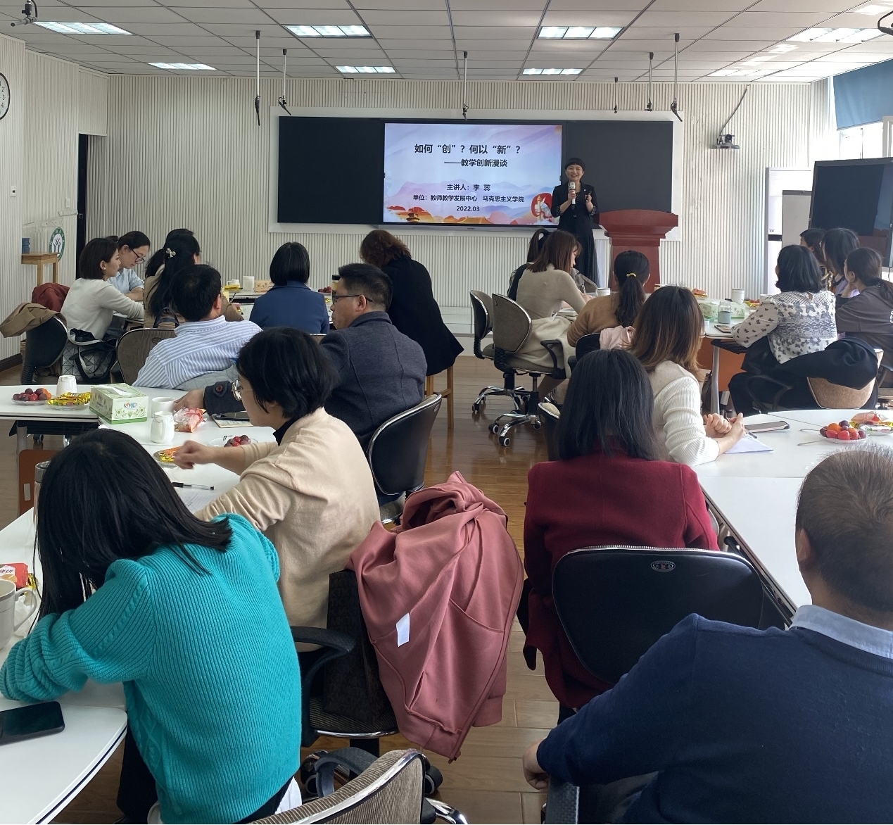 3月11日,德赢官网副院长李蕊教授应教师教学发展中心邀请,在教7楼501教室作 “如何 ‘创’? 何以 ‘新’ ? ——教学创新漫谈”专题讲座,德赢官网近20名青年教师和其他学院10多位教师参加了本次活动。