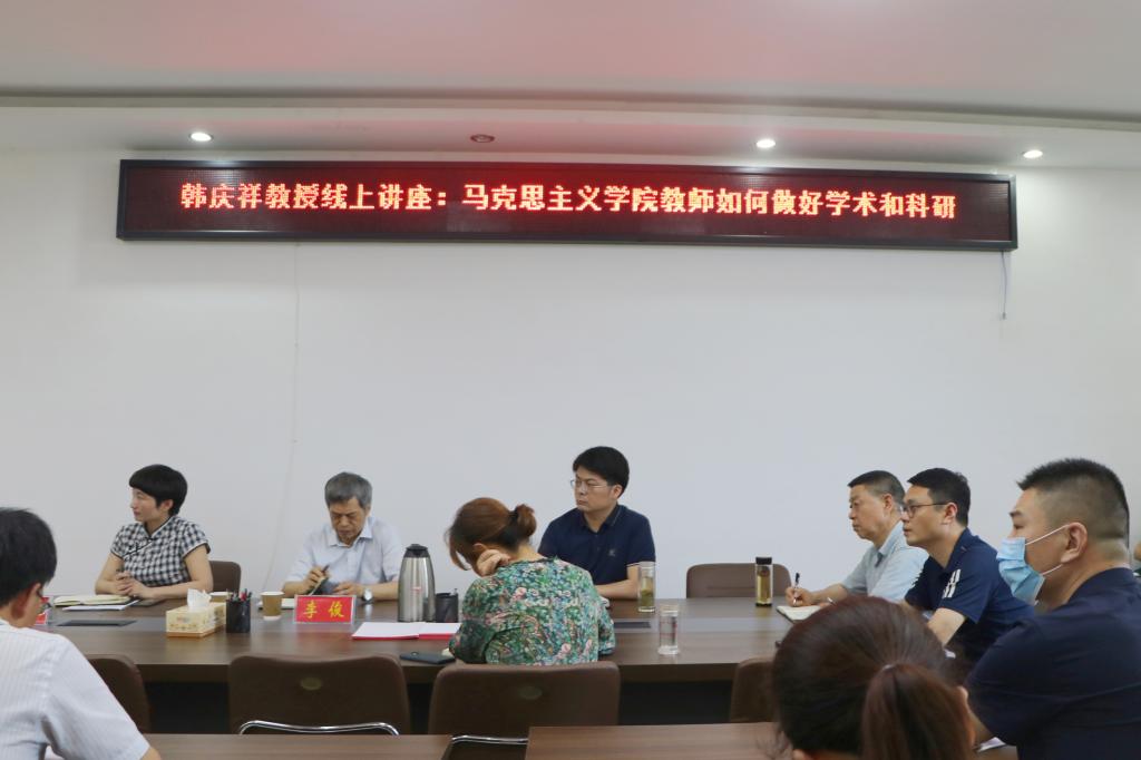 6月6日,应德赢AC米兰官网邀请,中共中央党校(国家行政学院)韩庆祥教授在腾讯会议网络平台为德赢官网师生作了题为“德赢AC米兰官网教师如何做好学术和科研”的专题讲座。信阳师范学院校长李俊教授亲临讲座现场并致辞,德赢AC米兰官网全体教师、研究生和部分本科生以集中或线上分散形式聆听了此次讲座。讲座由德赢AC米兰官网副院长李蕊教授主持。