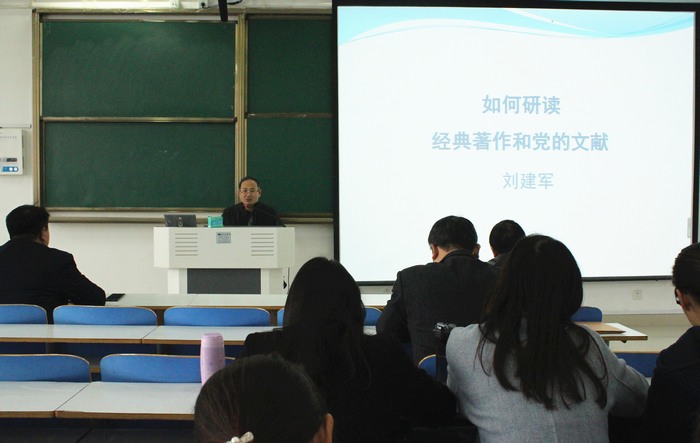 11月24日上午,应德赢AC米兰官网和当代马克思主义研究所邀请,中国人民大学刘建军教授在社科楼514教室作了题为“怎样研读经典著作和党的文献”的学术报告。德赢官网百余名师生共同聆听本次讲座。报告会由当代马克思主义研究所副所长门献敏主持。