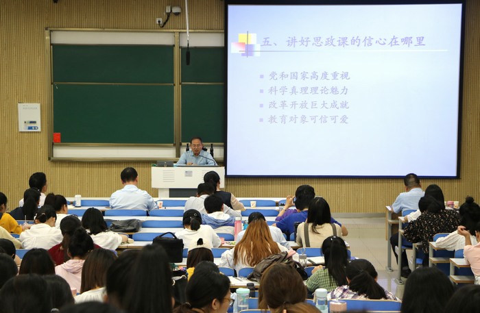报告会上,刘建军以亲临习总书记3.18讲话现场的体会为切入点,从“参加座谈会的现场感受”、“大学思政课有哪些课程”、“思政课重要在什么地方”、“思政课教学难点在哪里”、“搞好教学的信心在何处”、“怎样才能搞好教育教学”六个方面展开报告。他指出,习近平总书记在3.18讲话中根据自身思政课学习和讲授的经历提出“思想政治理论课是落实立德树人根本任务的关键课程”,重点强调思政课教师的重要性、思政课的改革创新及党对思政课的领导等几个方面。他指出,习总书记在讲话中提及的“六个素养”、“八个统一”是发挥思政课教师积极性、主动性、创造性的关键和改革创新思政课教学的重要一步。他认为作为一名思政课教师,要把握好思政课的教学难点在于不仅是政治课、理论课,更是共同课、信仰课,思政课教师应有充足的信心,通过提高精神境界、振奋精神状态、提高理论水平、改进教学方式等方式提高思政课教学水平。