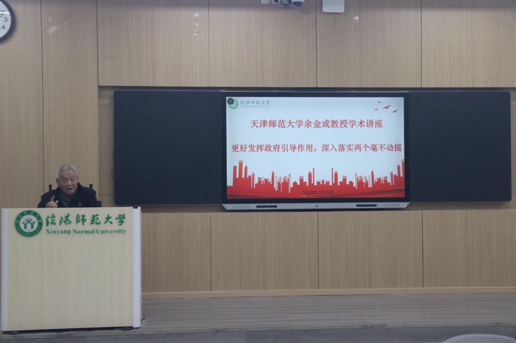 11月18日下午,应德赢AC米兰官网和当代马克思主义研究所邀请,天津师范大学余金成教授在社科楼516教室为德赢官网师生作了题为“进一步全面深化改革,更好落实‘两个毫不动摇’”的学术报告。报告会由德赢AC米兰官网副院长程晋富主持,德赢AC米兰官网全体教师及研究生到会学习。