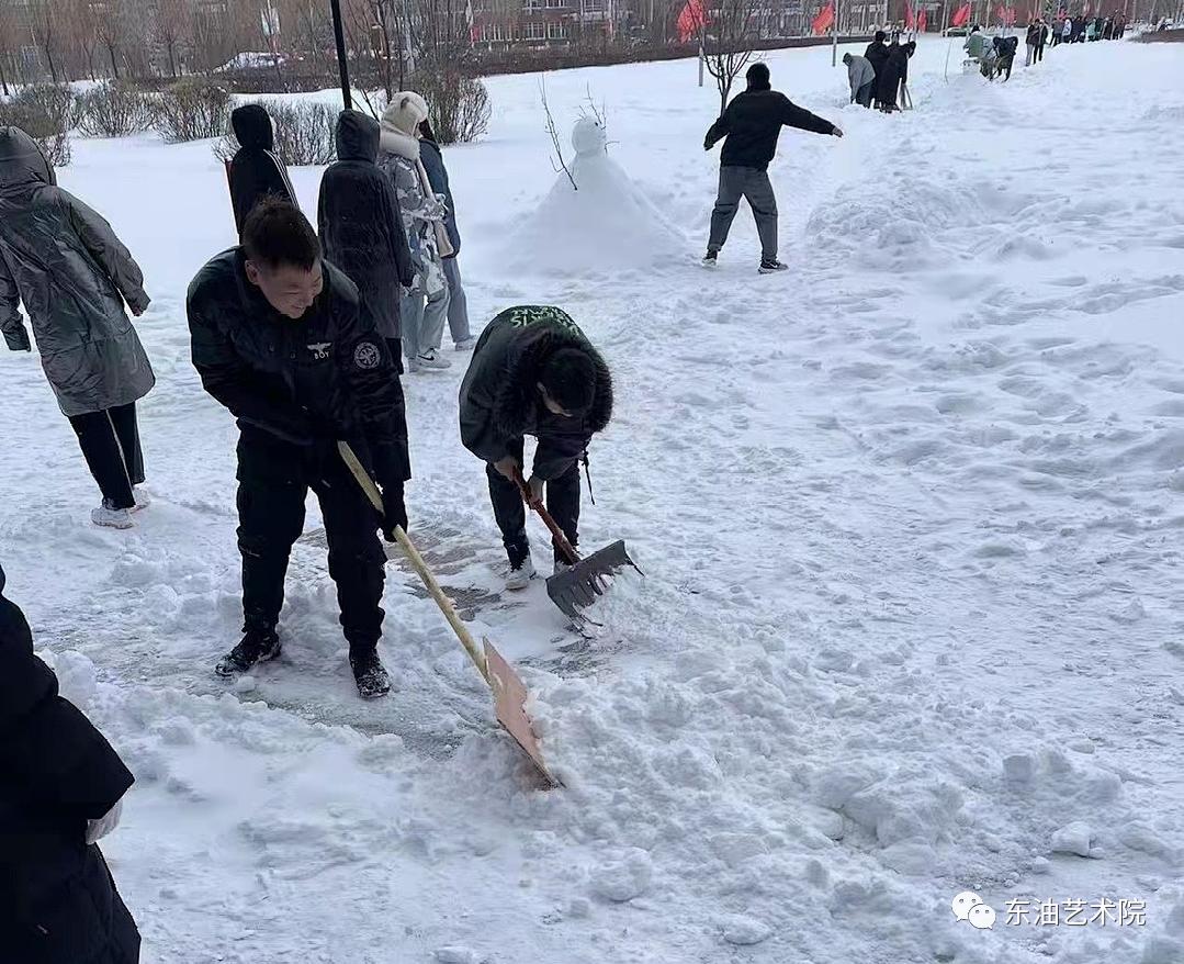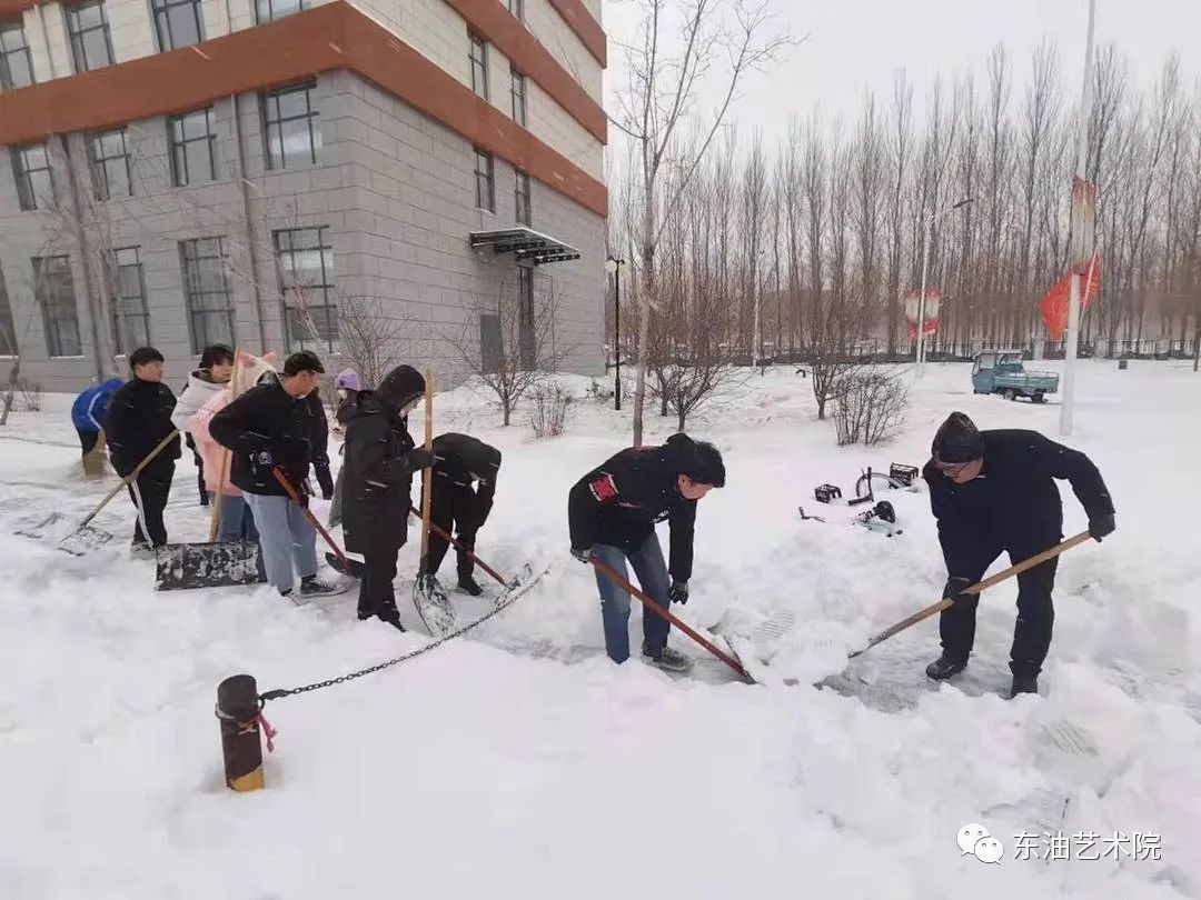 为了给老师同学们开辟一条道路,艺术院的大一新生们冒着严寒和风雪清扫着艺术院楼前广场,356官网领导也加入到扫雪的队伍中与同学们一同克服风雪困难!