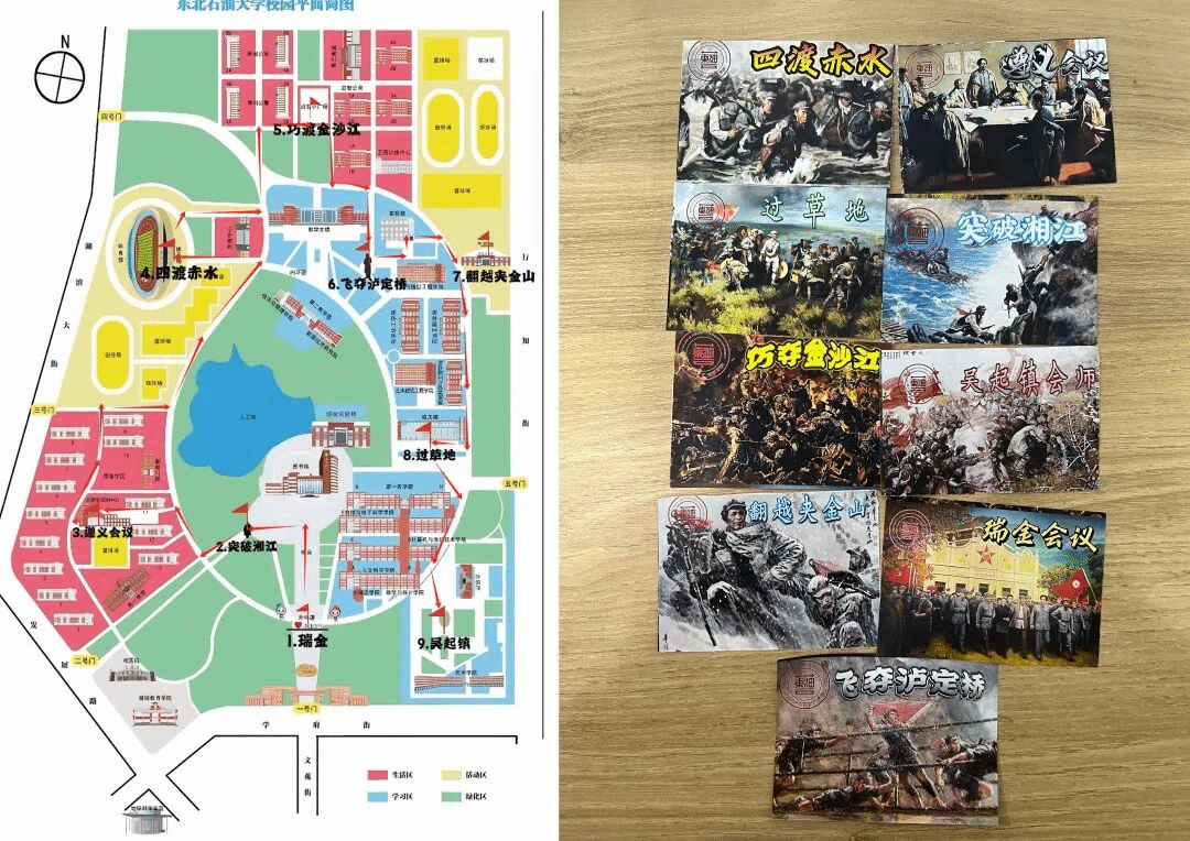 在校园“长征路”的过程中,每一个打卡点都发放当时的长征照片,并设置工作人员进行讲解和问答并收获相应奖品,激发参与者们的活动兴趣。通过一幅幅珍贵的历史图片、同学们仿佛穿越时空,回到了那个战火纷飞的年代。大家表示,这次活动不仅直观了解了长征的艰辛与伟大,也更加深刻地认识到今天的幸福生活来之不易。
