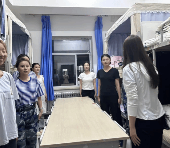 在查寝过程中,教官认真检查每个学生的被子叠放是否整齐、衣物摆放是否有序,以及个人卫生是否得到保障。同时,他们还不时地向新生们传授叠“豆腐块”的技巧和方法,让他们在实践中不断提高自己的内务整理能力。“叠被子要用心,要有耐心,这是锻炼你们意志品质的一个重要方面。”教官们认真的模样让同学们深切感到学校对于宿舍卫生的重视,让同学们深受感动,新生们纷纷行动起来,重新整理自己的床铺和物品,力求做到最好。