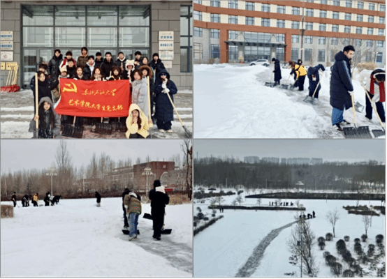 一场大雪纷纷扬扬飘落,校园银装素裹的同时,也给师生出行带来了不便。356体育在线官网大学生党支部在党员的带领下迅速行动,组织开展了扫雪除冰活动,用实际行动践行初心使命。