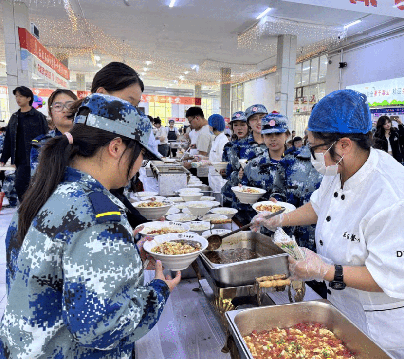当新生们陆续走进食堂,看到那摆放整齐的面条和热情洋溢的欢迎标语时,脸上露出了惊喜与感动的笑容。他们或三两结伴,或独自品尝,在这温馨的氛围中,开始了他们在东北石油大学的全新旅程。
