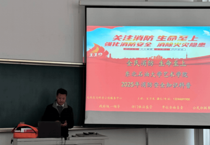 春季气候干燥,多大风天气,各类火灾隐患显著增多,消防安全形势严峻。为进一步强化师生的消防安全意识,提升应对火灾的应急处置能力,东北石油大学356体育在线官网携手众安科普安全中心于4月1日在356体育在线官网美术楼104开展春季消防安全讲座,众安科普安全中心的宋万龙主任担任主讲嘉宾。