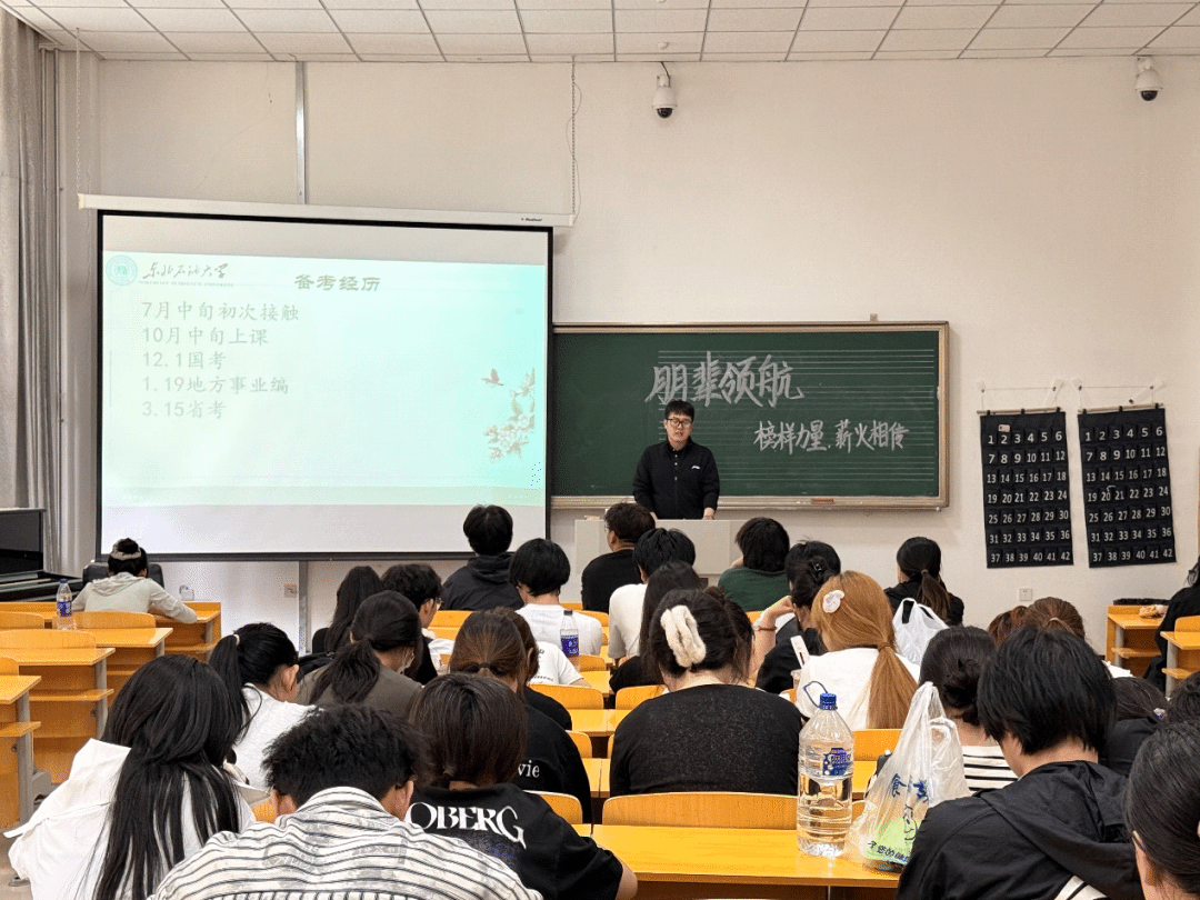 活动中,以主题分享与互动答疑相结合的形式有序展开。白杨学长率先登台,他结合考公成功经验,向同学们细致讲解行测各模块的学习技巧与申论写作的积累方法。“行测要逐个突破薄弱模块,申论需坚持每日素材积累。” 他着重强调,“备考是一场持久战,短板决定上限,只有不断攻克薄弱环节,才能实现质的飞跃。”