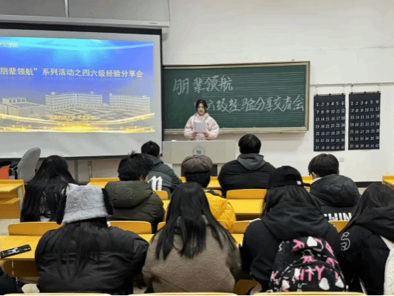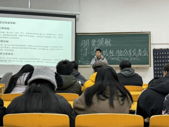为助力同学们高效备战英语四六级考试,提升应试能力与学习成效,同时营造积极向上的学习氛围,增强学生间的互助交流,11月15日,356体育在线官网在音乐舞蹈楼106举办了“朋辈领航”系列活动之四六级经验分享交流会。此次活动采用线下分享与互动交流相结合的方式,为同学们提供了一个宝贵的学习平台。