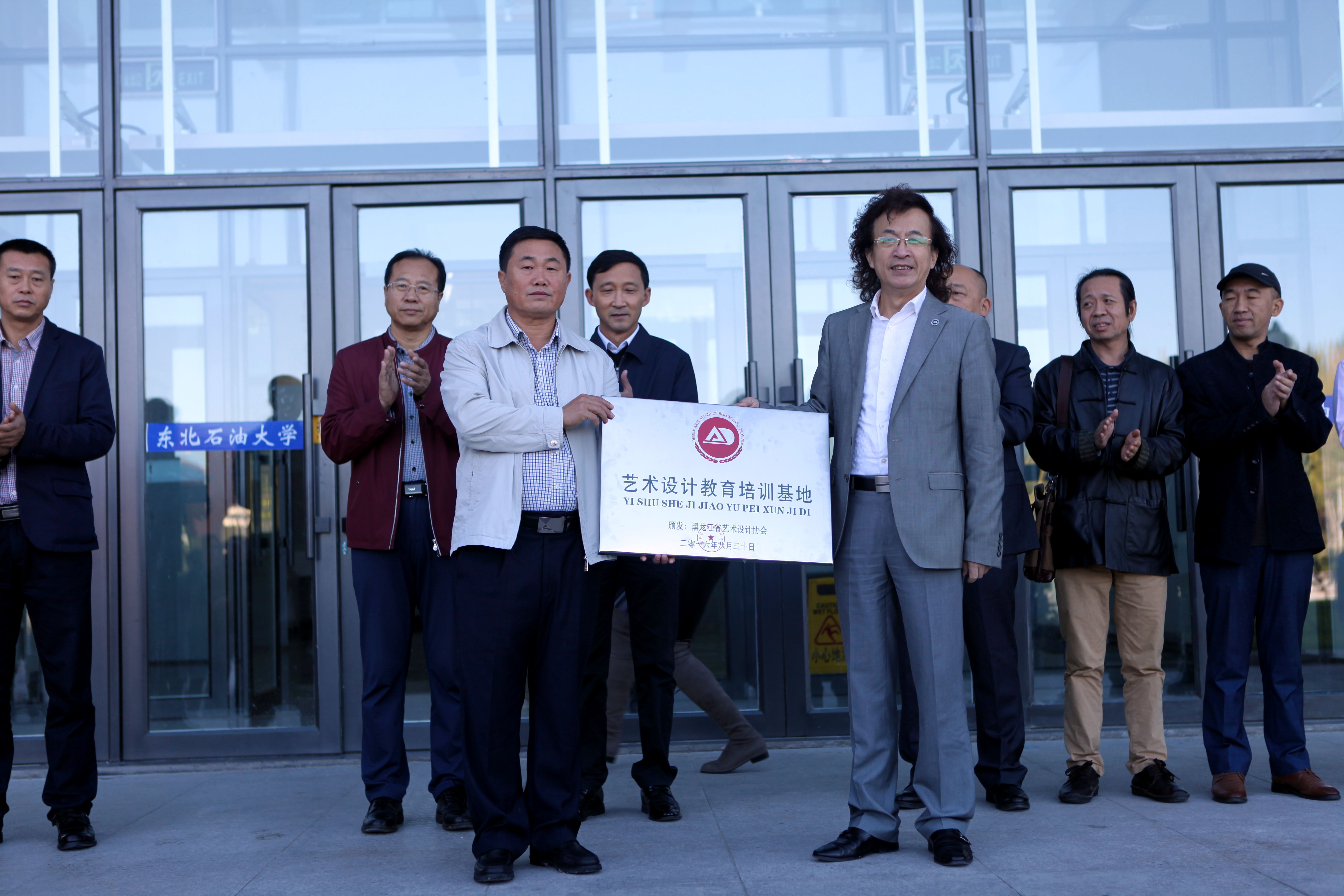 9月28日上午9点,2016黑龙江创意设计系列优秀作品东北石油大学巡展开幕式暨“黑龙江省艺术设计教育基地”授牌仪式在我校356体育在线官网举行,副校长蒋明虎、教务处处长张景富、省艺术设计协会会长张震甫、大庆师范学院美术与设计学院院长孙大力、副院长李方海、大庆艺术设计协会秘书长范志龙、东北石油大学工业设计系硕士生导师刘文庆及356体育在线官网领导与师生参加了此次活动。会议由356体育在线官网副院长王宝军主持。
