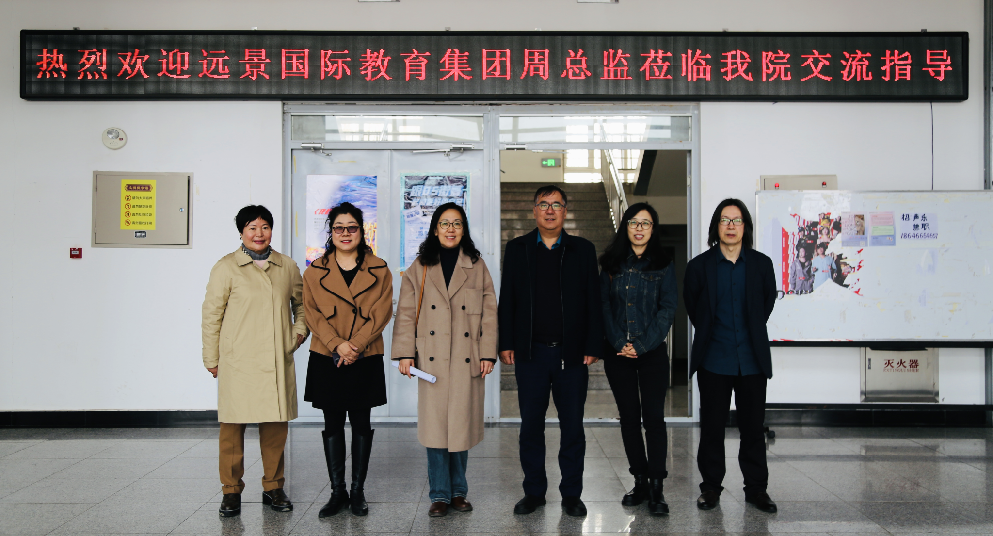 4月16日上午,远景国际教育集团总监周班竹、郭淑媛一行2人来356官网交流访问。访问期间,周总监和郭总监参观了馨艺厅、多媒体教室、民族管弦乐团排练厅、录音室等,356体育在线官网党委书记张金辉、院长林庆华、教学副院长王靖一陪同。
