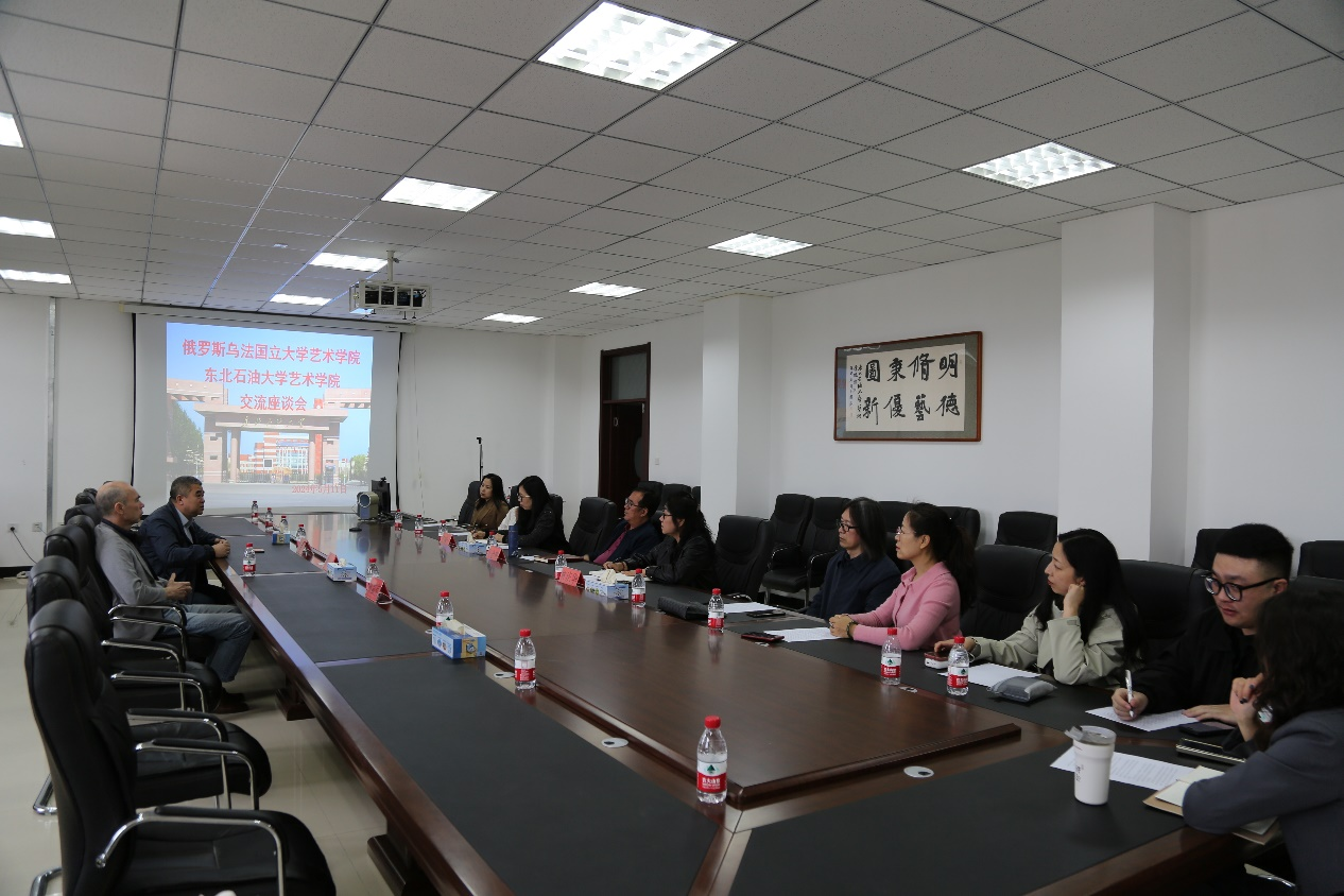 张金辉书记和林庆华院长代表356官网对代表团一行表示热烈欢迎,并详细介绍了学院近年来在教学、科研、学科建设等方面所取得的成果。林院长强调356官网始终致力于培养具有国际视野和创新精神的高素质艺术人才,并希望通过与乌法国立356体育在线官网的深入合作,共同推动两国艺术教育的交流与发展。
