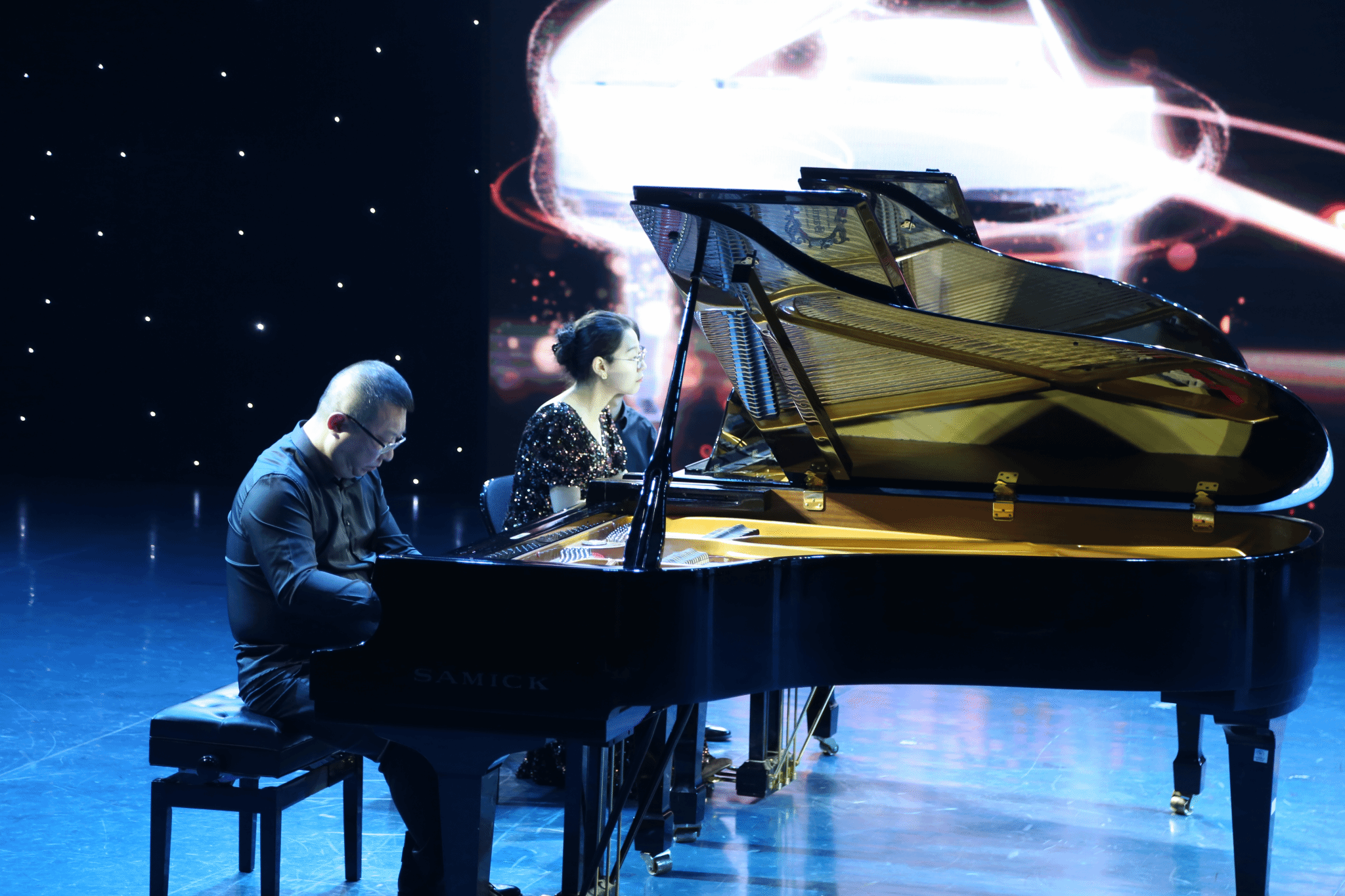 哈尔滨音乐学院方弋教授和他的2022级研究生刘婧璠演奏了柴可夫斯基的《第一钢琴协奏曲》和中国钢琴协奏曲《保卫黄河》,激昂的旋律、磅礴的气势将听众们带入充满情感与力量的音乐世界。