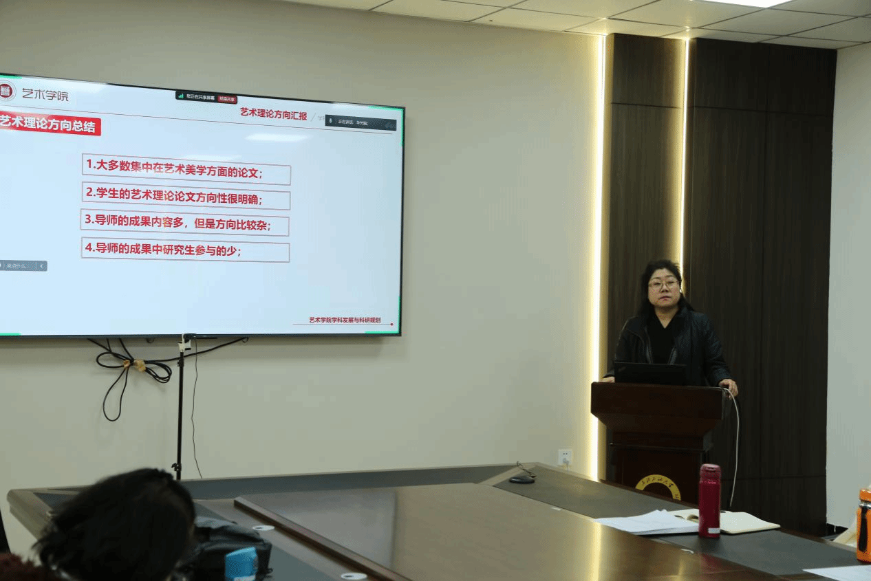 会上,刘文庆、孟祥龙、王艺播、滕丹、魏莱、闫红、钟国富、张鹏、朱茜等博士依次汇报了个人在“十四五”期间取得的成果,并阐述了“十五五”的规划。随后,艺术学硕士专业各研究方向的带头人伊善斌、张雪、王靖一也分别就本学科的科研规划进行了详细汇报。