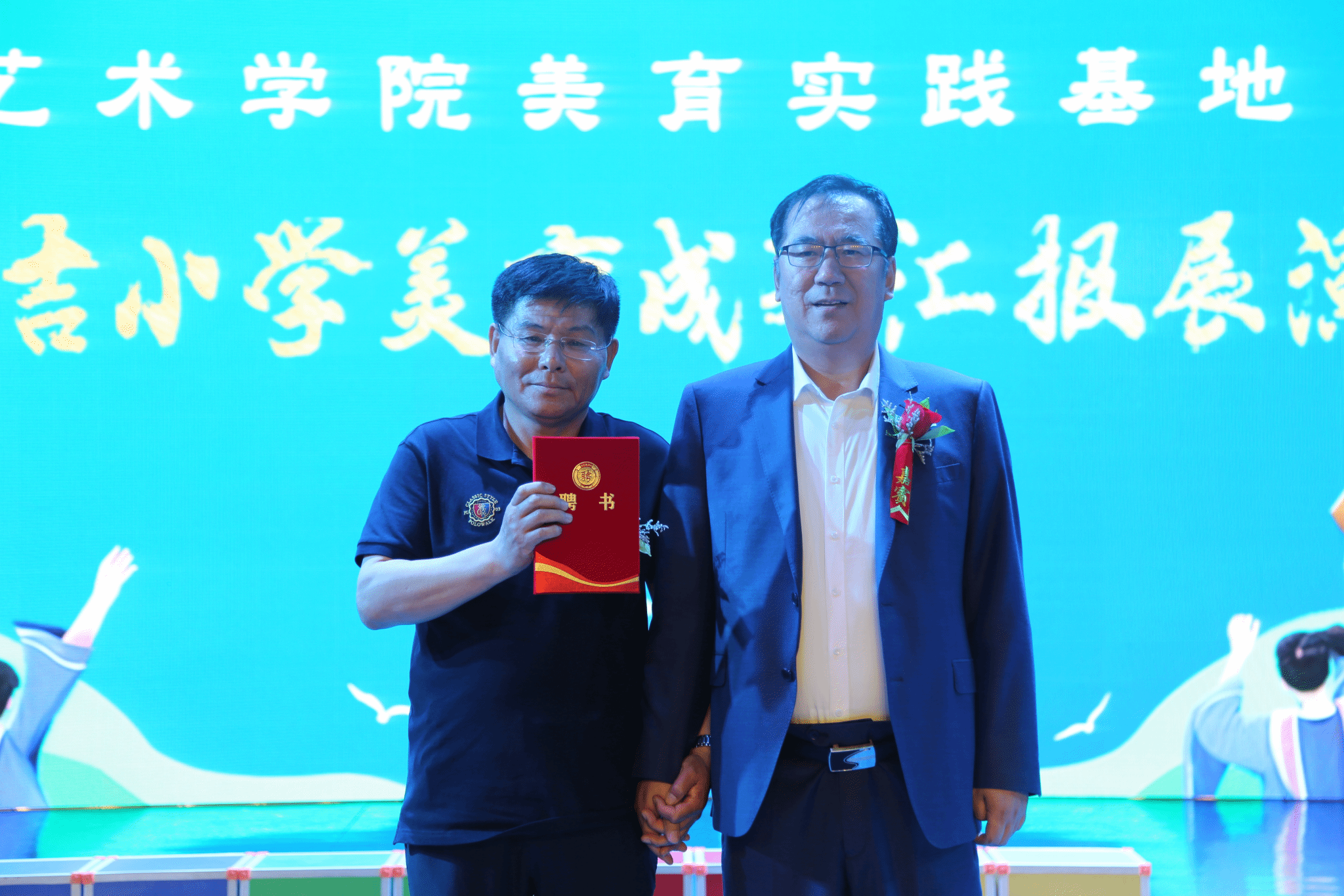 356体育在线官网党委书记张金辉为民吉小学教师常国英颁发聘书,聘任其为东北石油大学356体育在线官网民吉学校美育基地主任。院长林庆华、副书记张丽坤、副院长董万多为民吉小学的同学们赠送了礼物。