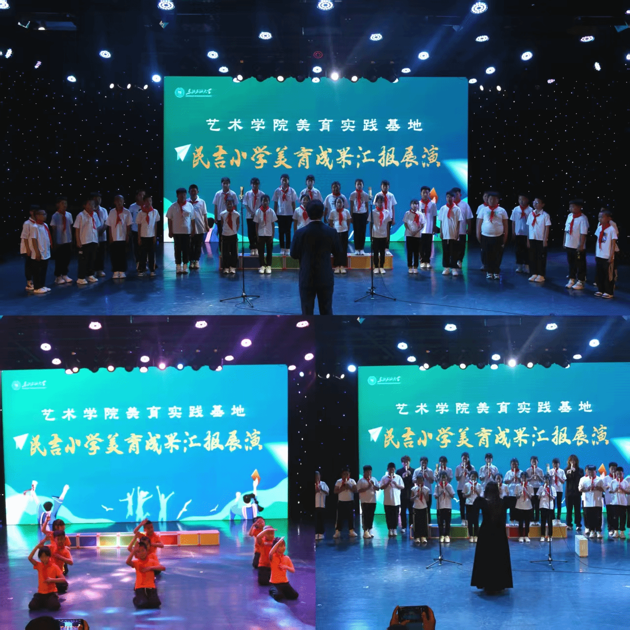 上午10时30分,一场双向奔赴的美育展演在音舞楼馨艺厅拉开帷幕。民吉小学的孩子们表演了三个精彩节目:竖笛合奏《义勇军进行曲》奏响爱国情怀,民族舞蹈《苹果香》展现乡土童趣,小合唱《世界赠予我的》唱响成长梦想。这些由356体育在线官网老师和民吉小学师生共同打磨的节目,生动诠释了美育浸润下的童心绽放。