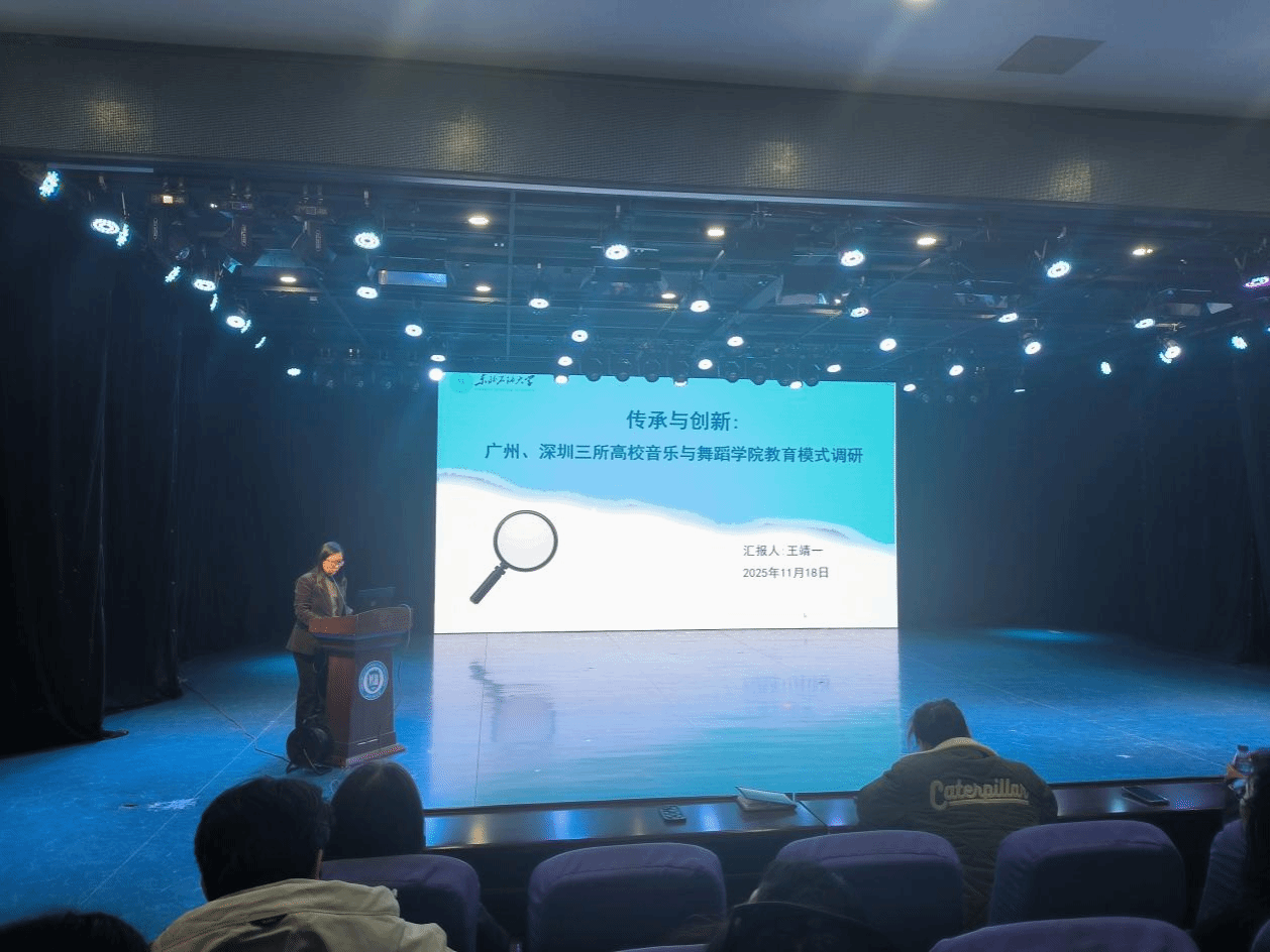 随后,副院长王靖一分享了赴华南地区三所高校的调研成果,包括广州大学音乐与舞蹈学院、广东外语外贸大学356体育在线官网以及深圳大学艺术学部音乐舞蹈学院。她详细介绍了这些院校在跨学科融合、实践教学体系构建以及服务地方文化建设方面的先进经验,引发了与会者的深入思考。