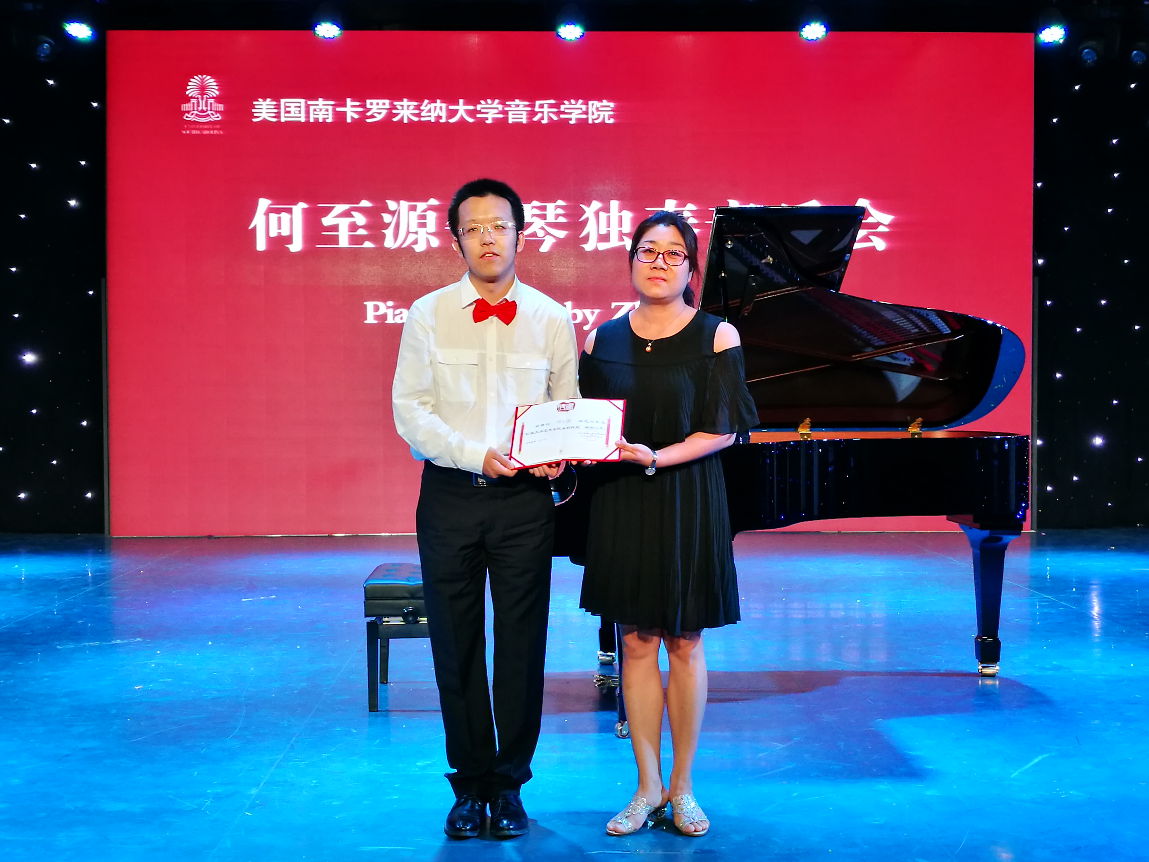 6月29日,美国南卡罗莱纳大学音乐学院在读博士何至源钢琴独奏音乐会及交流会在356体育在线官网馨艺厅隆重举行。356体育在线官网副院长林庆华等院系领导及音乐系师生出席了本次音乐会。