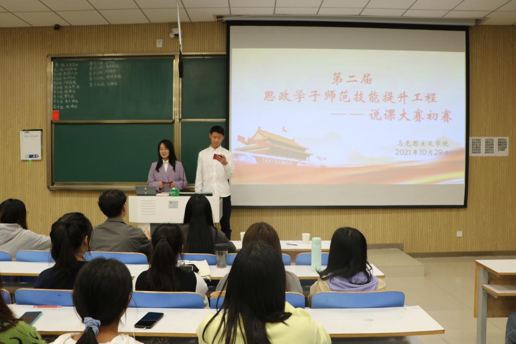 10月29日晚,由德赢AC米兰官网主办,学生会学术科技部和南湖理论研讨社共同承办组织的说课大赛初赛在社科楼515教室顺利举办。德赢官网团委老师高小佳、专职组织员任婷、思政课教师王雨共同担任本次比赛评委,比赛由雷江涛、卢茜雨主持。