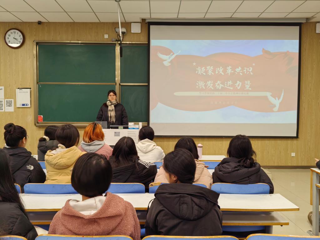为深入学习贯彻党的二十届三中全会精神,增强新时代大学生的社会责任感和使命感。12月7日下午,南湖理论研讨社在社科楼515教室举办“凝聚改革共识,激发奋进力量”学习贯彻党的二十届三中全会精神主题宣讲活动。本次活动由社长马乐彤主持。