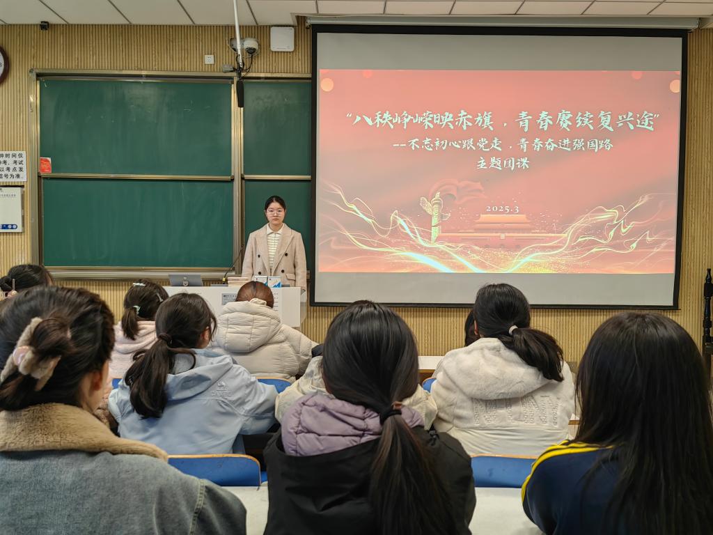 团课伊始,范茜茜简述抗战精神与党的正确领导的重要性,通过播放《抗战胜利80周年纪念短片》来增强同学们的视觉体验和情感认同,并以此为切入点,探讨青年在新时代的责任与担当。接着,同学们共同讨论在党的领导下如何从历史中汲取力量,以及如何将这些力量转化为推动社会发展的实际行动,为祖国发展贡献青春力量。最后,范茜茜强调,作为新时代的中国青年,我们应当始终保持不忘初心跟党走的坚定信念,持续加强自我学习,提高自身素质,确保在党的领导下成长为能够担当起民族复兴大任的时代新人。