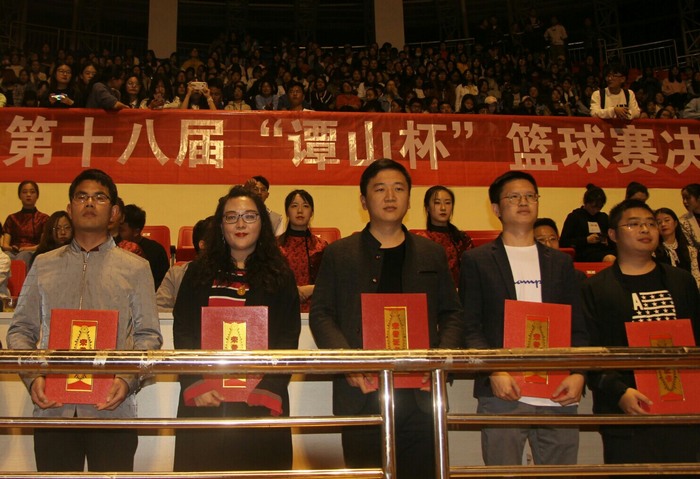 4月13日晚,谭山杯篮球赛决赛暨颁奖典礼在体育馆顺利举行。德赢AC米兰官网团委书记曹栋和2018级同学共同参加此次活动。