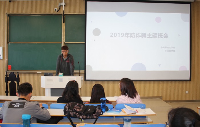 会上,生活劳卫部的同学用PPT辅以视频的方式,分别从网络诈骗、校园贷、传销、兼职诈骗、电信诈骗五个方面展开叙述,向同学们详细介绍了诈骗方式的多样性。首先,刘晓哗、周宇涵借网络、电信诈骗的真实案例来引出其严重危害。她们指出,网络、电信诈骗的类型多样,预防网络、电信诈骗,应做到“三不一要”,即:不轻信、不透露、不转账、要及时报警。接着,涂林以校园贷款的途径为切入点,全方位的对校园贷款的高风险进行剖析,指出校园贷款存在着高费用、便“劫”款、全方面催款等风险。随后,杜萌薇、薛梦娜分别从传销活动、大学生兼职诈骗两个方面进行说明。她们建议,大学生就业应选择安全正确的就业方式,避免偏信他人,误入歧途。最后,卢赫炎对本次班会进行总结。他提到,由于诈骗分子无孔不入,大学生安全防范意识薄弱,提高学生的防诈骗能力尤为重要。希望同学们遇到诈骗冷静应对,共同营造绿色校园。