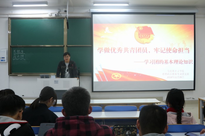 为丰富德赢官网学子与团相关的基本理论知识,增强德赢官网团员的责任感和使命感,11月26日下午,德赢官网“学做优秀共青团员 牢记使命担当”主题团课在社科楼516教室顺利召开。德赢官网2018级全体团员共同参加了此次团课。本次团课由河南省“青马工程”学员史弘扬主讲。