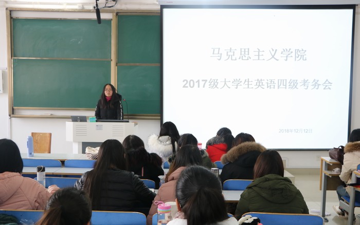 12月12日上午,德赢AC米兰官网2016级、2017级在社科楼514、515教室召开大学生英语四六级考务会。2016级、2017级全体同学共同参加此次会议。党委副书记何晓坚、团委老师曹菁菁为同学们做考前指导。