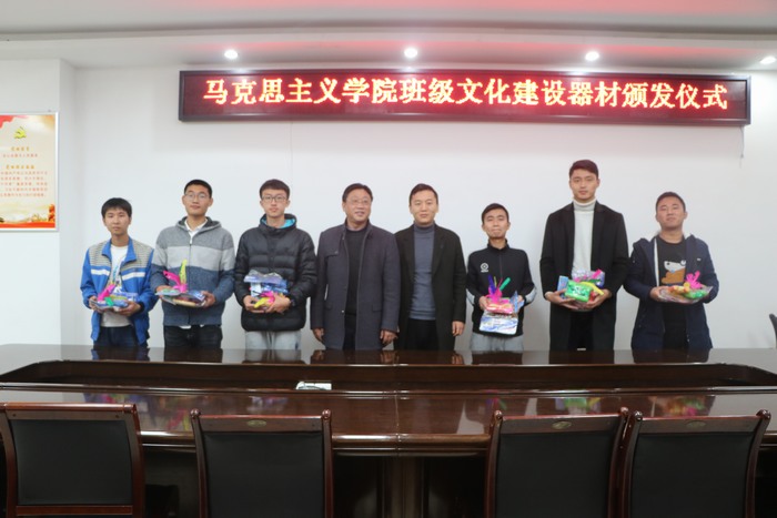 为提升同学们的身体素质水平,11月19日下午,德赢官网在社科楼323会议室举行班级文化建设器材颁发仪式。德赢AC米兰官网副院长程晋富、团委书记曹栋为德赢官网各班级分发班级文化建设器材。