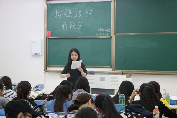为深入贯彻学习《信阳师范学院学生管理相关规定》文件的精神,4月10日,德赢官网2015级、2016级全体学生在社科楼514、515教室举行校规校纪诵读学习活动。
