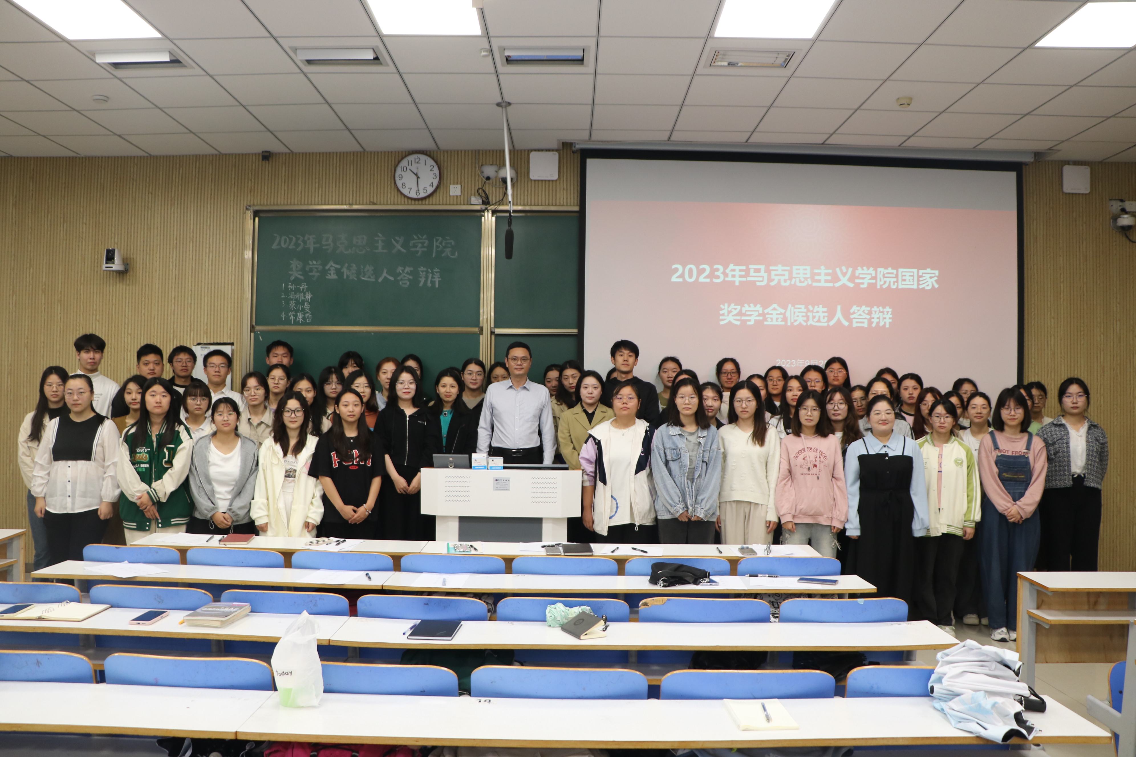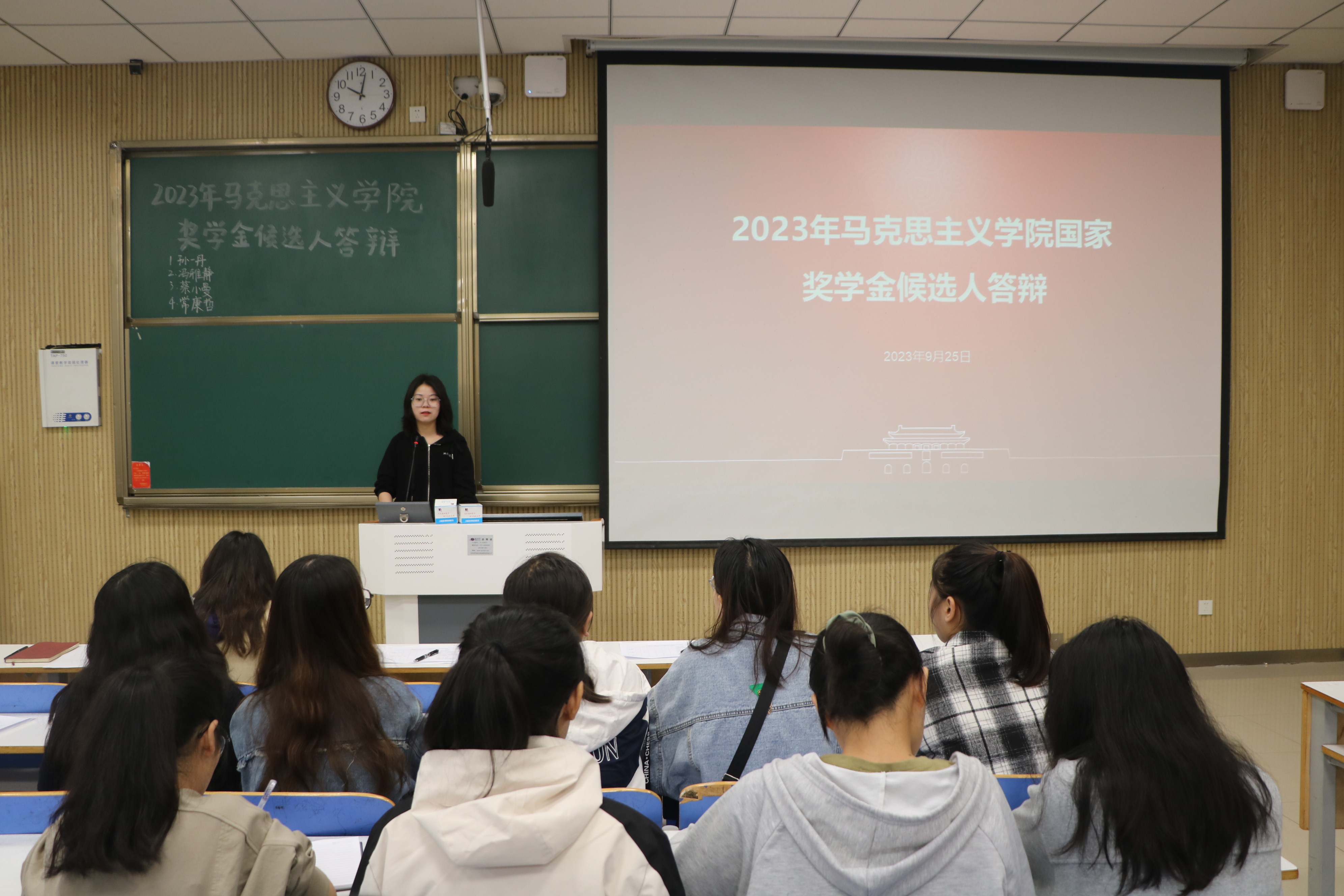 经过个人申报和学院初审,共有四位候选人进入答辩环节。各候选人按照抽签顺序依次上台,结合PPT全面阐述自己在思想素养、专业学习、工作任职、社会实践和科研成果等方面的收获与实绩,并由评委进行现场打分。各位候选人品学兼优,自信从容,以饱满的热情向我们展现了当代青年高扬理想、敢于作为的青春风采,获得了现场评委们的高度认可。答辩环节结束后,各位评委对候选人寄予殷切期望,同时也勉励前来观摩的学生代表,希望他们以答辩选手为榜样激励自己,见贤思齐,练就过硬本领,锤炼品德修为,担当时代大任。