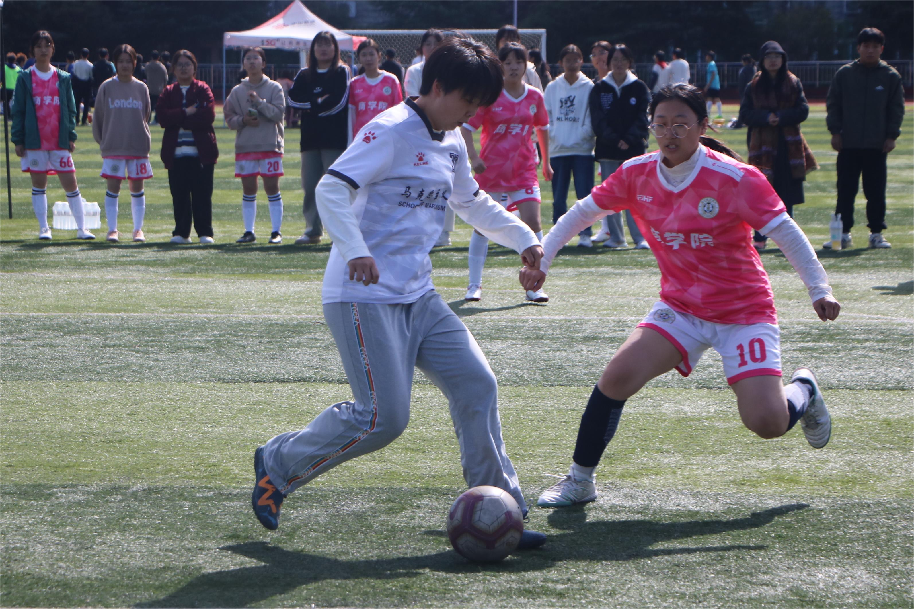 逐梦绿茵场,激扬学子情。11月6日中午,“逐梦杯”女子足球淘汰赛在西操场拉开帷幕。德赢AC米兰官网女子足球队与商学院女子足球队展开激烈角逐。两院学子共同观看本次比赛。