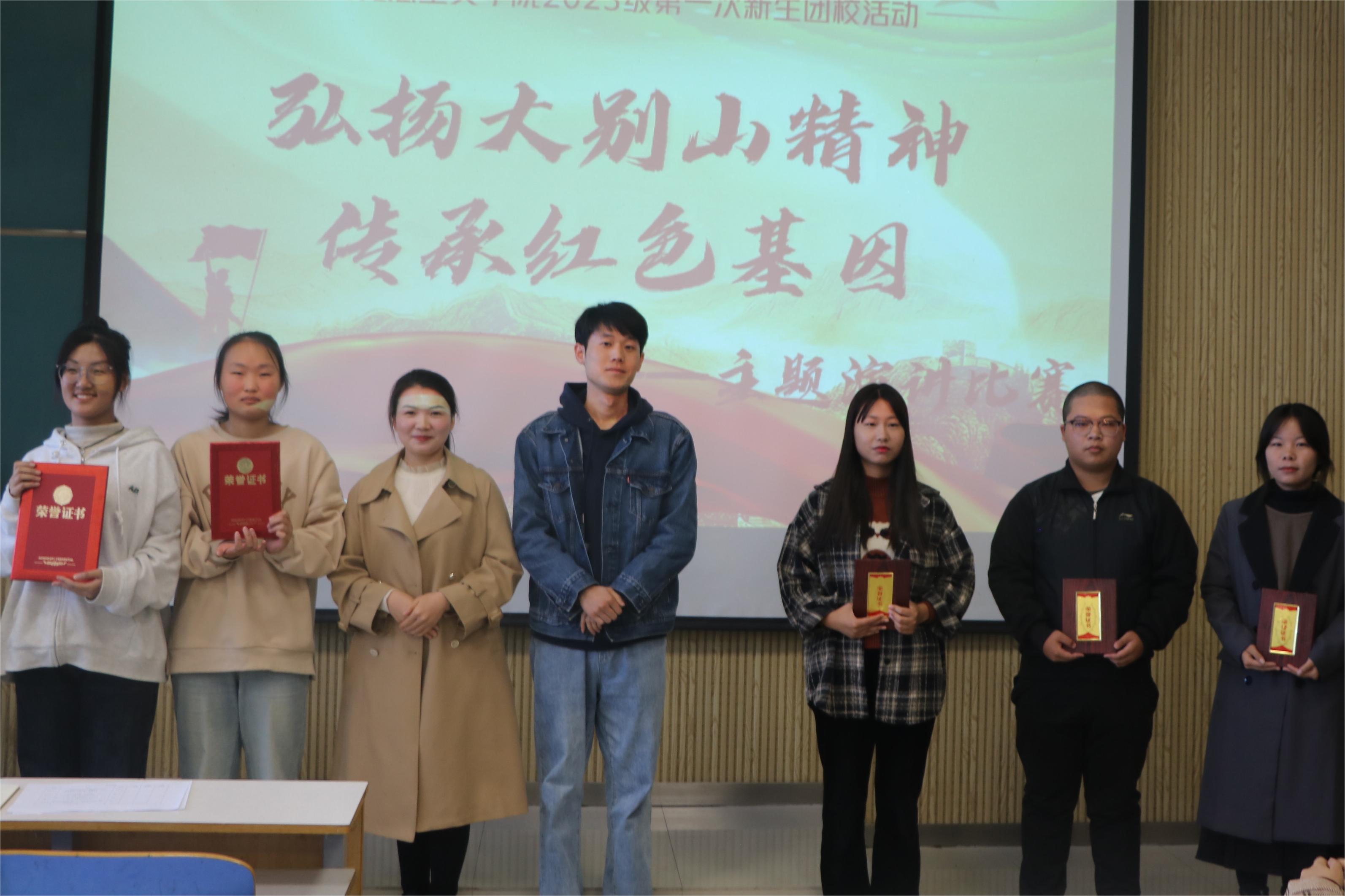 为弘扬大别山精神、发挥红色基因育人功能,11月7日上午,德赢AC米兰官网在社科楼515教室举办“弘扬大别山精神,传承红色基因”主题演讲比赛暨2023级新生第一次团校活动。德赢官网团委书记陶青青、新生辅导员沈海蓄以及主席团成员担任评委,比赛由分团委副书记琚涵主持。
