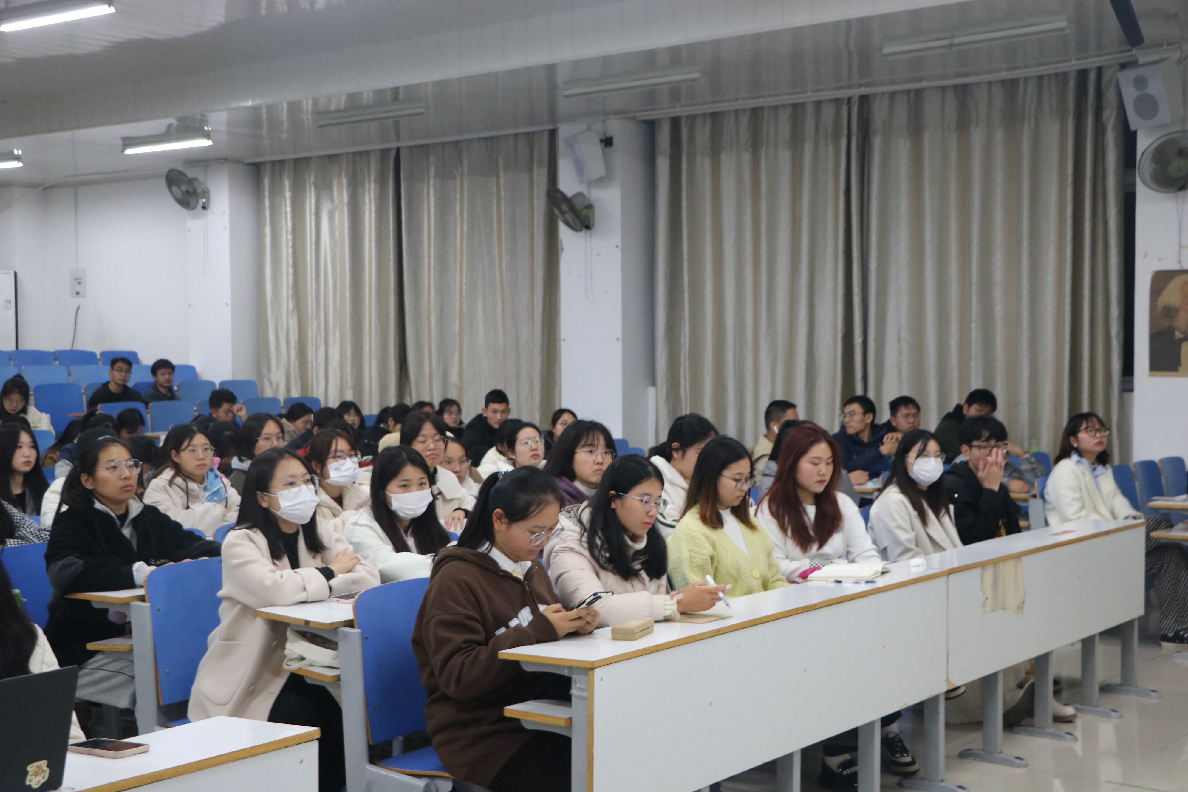 会上,三位优秀考研学子温玉婉、杨钰鑫、胡战伟结合自身的考研经历,围绕院校选择、科学备考、心态调整以及学习技巧四个方面向参会学子分享考研经验。其中,温玉婉在学业分析、学习方法及时间管理等方面为同学们提出了三点建议。她表示,同学们一要重视各学科的知识复习与总结,系统梳理各科知识点,做到全面覆盖、融会贯通;二要锤炼意志,坚定学习方向,以饱满的热情和坚定的信念迎接挑战;三要根据自己的实际情况做好科学的时间规划,合理安排时间,做到既把握全局,又不忽视细节。杨钰鑫则全面剖析各学科备考方法,引导考研学子明确发展目标和方向。他表示,每一位考研学子都要坚定信心,扎实基础知识的学习,培养严密的逻辑思维和创造性思维,以破釜沉舟的决心进行备考。最后,熊瑛以郑州大学为例带领大家熟悉考研流程,普及考研基本内容,分析历年考研数据,为同学们答疑解惑。