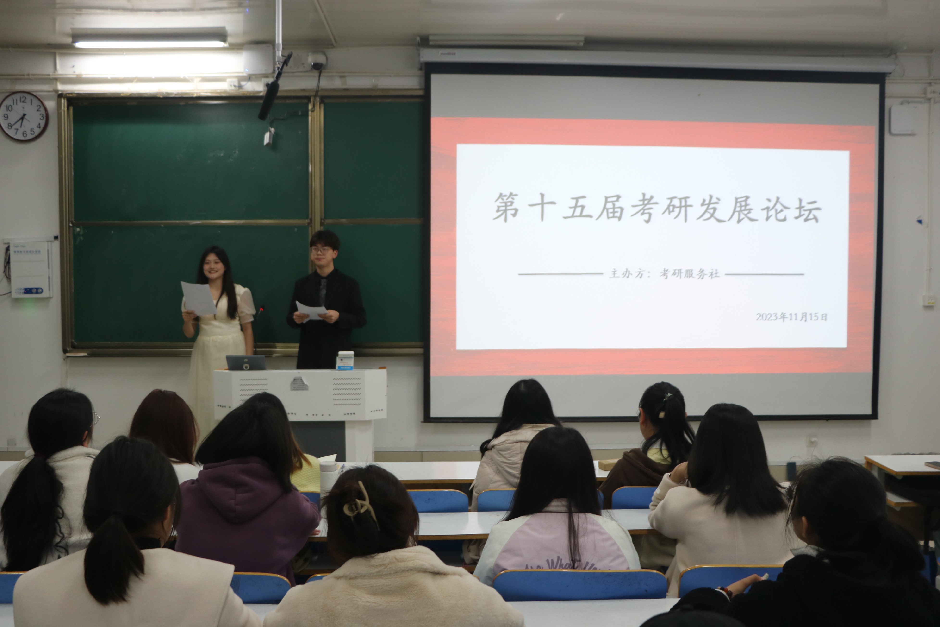 道阻且长,行则将至。11月15日晚,由德赢AC米兰官网考研服务社组织的第十五届考研发展论坛活动在社科楼514教室顺利举行。文都考研辅导老师熊瑛、社团发展与服务中心代表、考研服务社兄弟社团代表出席活动。此次活动由潘姿羽、季琳昊主持。