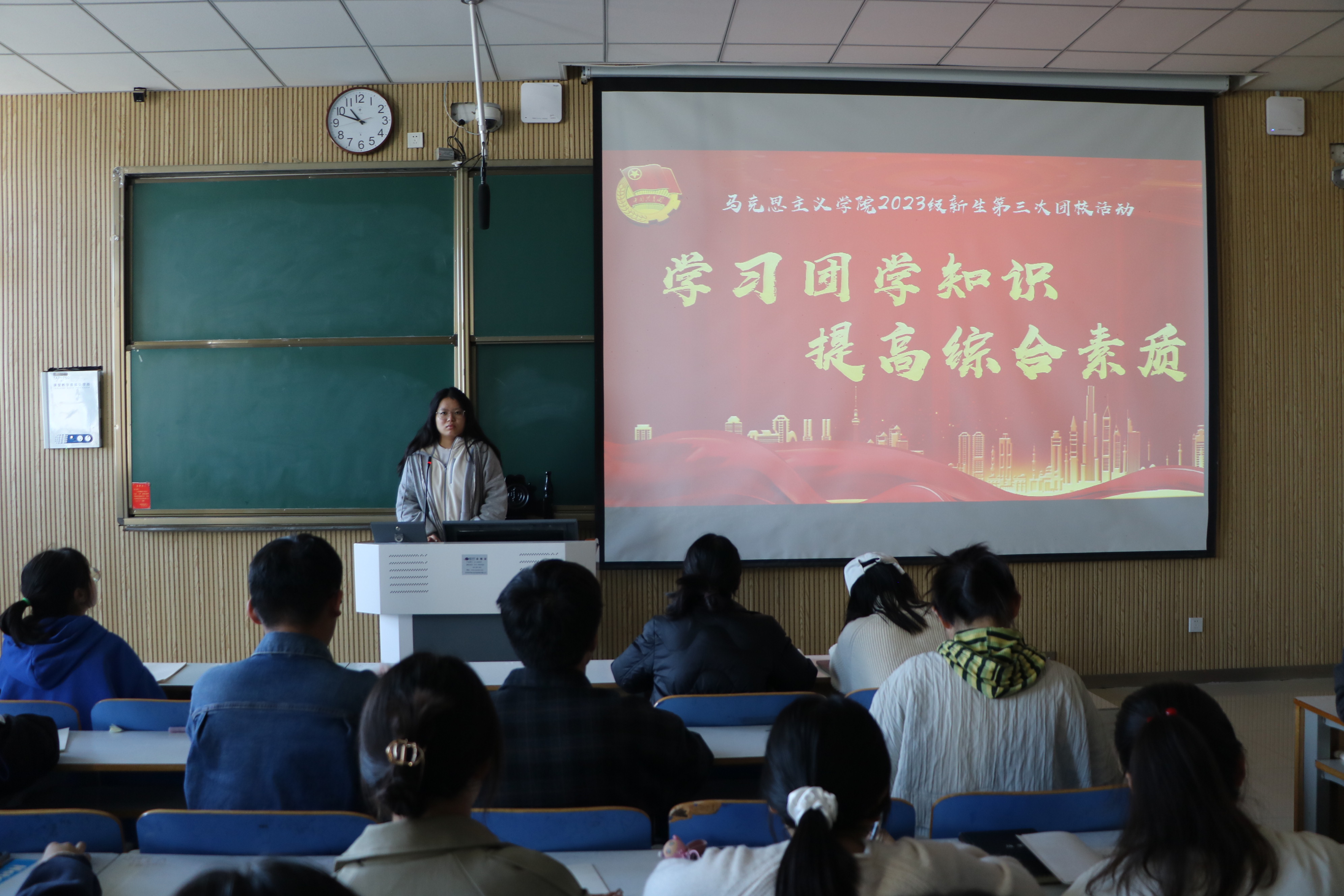 为增强新生团员意识,帮助新生更好地了解中国共产主义青年团,11月21日上午,德赢AC米兰官网在社科楼515教室开展“学习团学知识,提高综合素质”新生第三次团校活动。德赢官网2023级全体新生共同参加本次团课。此次活动由分团委副书记琚涵主持。