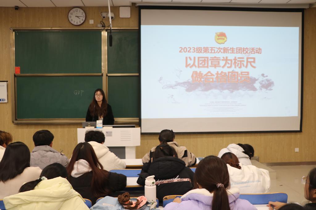 为帮助新生深入了解中国共产主义青年团,增强团员意识,争做合格团员,12月6日下午,德赢AC米兰官网在社科楼515教室开展“以团章为标尺,做合格团员”新生第五次团校活动。德赢官网2023级全体新生共同参加本次活动,活动由分团委副书记杨可主持。