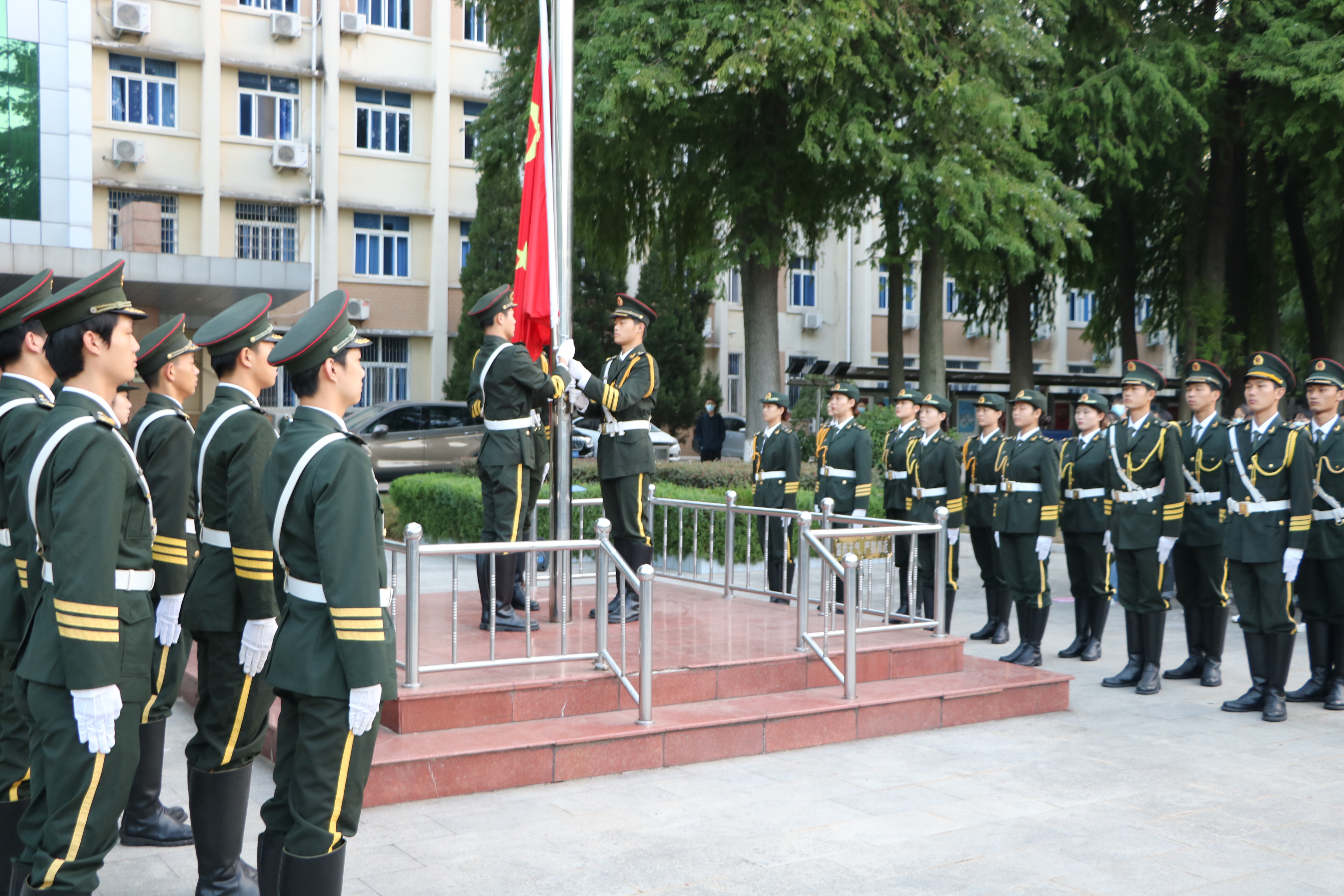 为进一步加强爱国主义教育,引导学生以更加饱满的精神状态践行青年使命,9月26日清晨,德赢AC米兰官网于行政楼前举行升国旗仪式。我校国旗护卫队、德赢官网新生班主任吴梦云、学生会主席李明营、2022级四位新生班代及2022级全体新生共同参加此次升旗仪式。