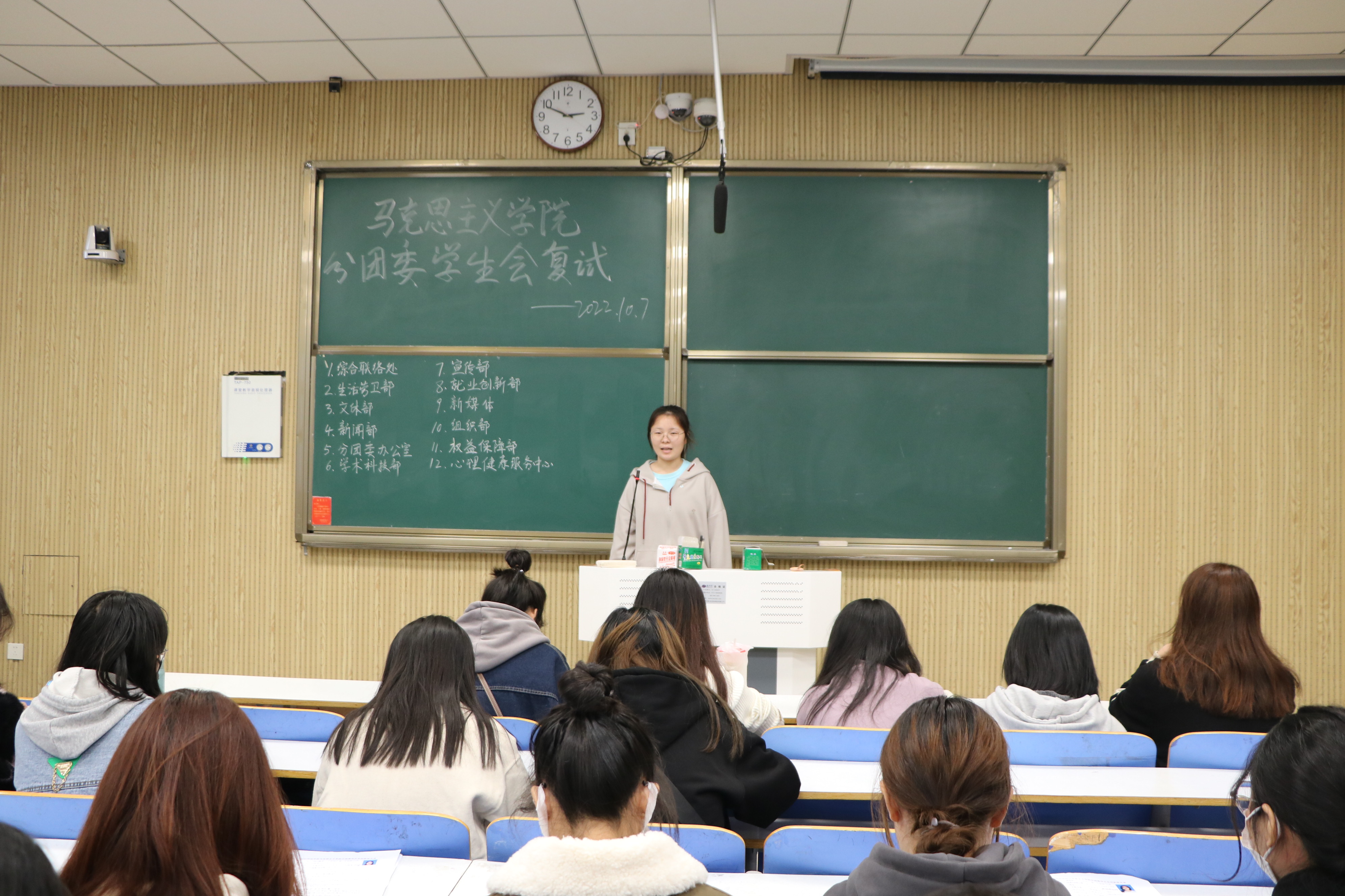 分团委学生会招新工作初期,各部门在宣讲会上结合PPT和快闪视频向新生简要介绍部门制度、工作流程、工作内容和往届部员风采等基本情况,并向新生展示了各部门丰富的的团建活动与高度的团队凝聚力。新生在了解部门情况的基础上,根据自身成长需要和技能特长选择相应部门递交应聘表。面试中,应试者通过三分钟演讲向部门负责人展示自身工作才能与竞争优势,表达为学院工作、为同学服务的决心和信心。各部门负责人认真聆听演讲内容,并依据部门工作需求向应试者提问,考察同学们的应变能力、工作态度和创新能力。面试结束后,各部门负责人秉承“人尽其才,共同发展”的原则,在分团委学生会内部组织集中研讨、审核与决策,合理分配各部门成员,争取实现人力资源优化配置。