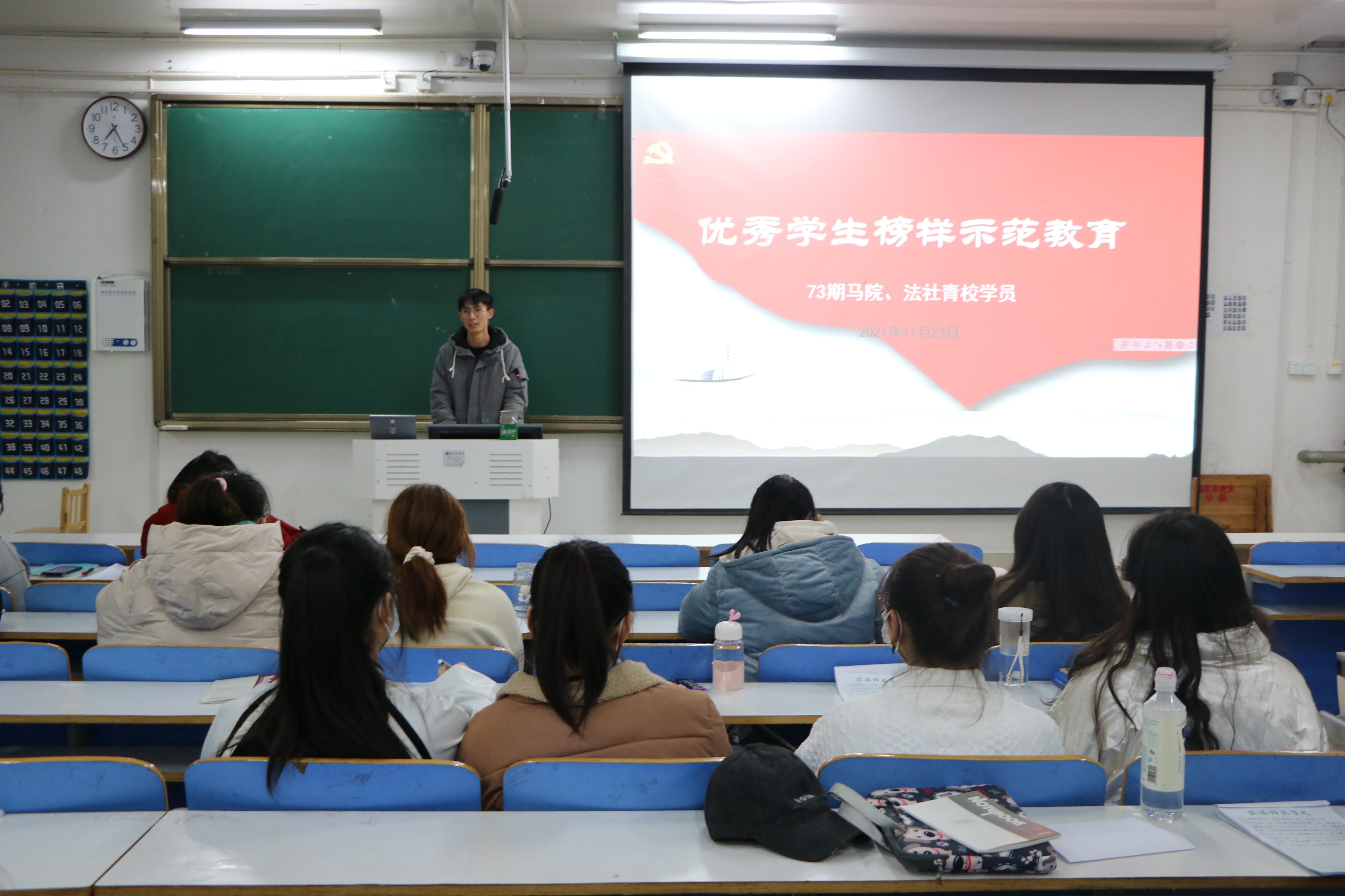 11月23日晚,德赢AC米兰官网和法学与社会学学院第73期青校学员在社科楼516教室开展优秀学生榜样师范教育活动。活动由法学与社会学学院组长张璨主持。