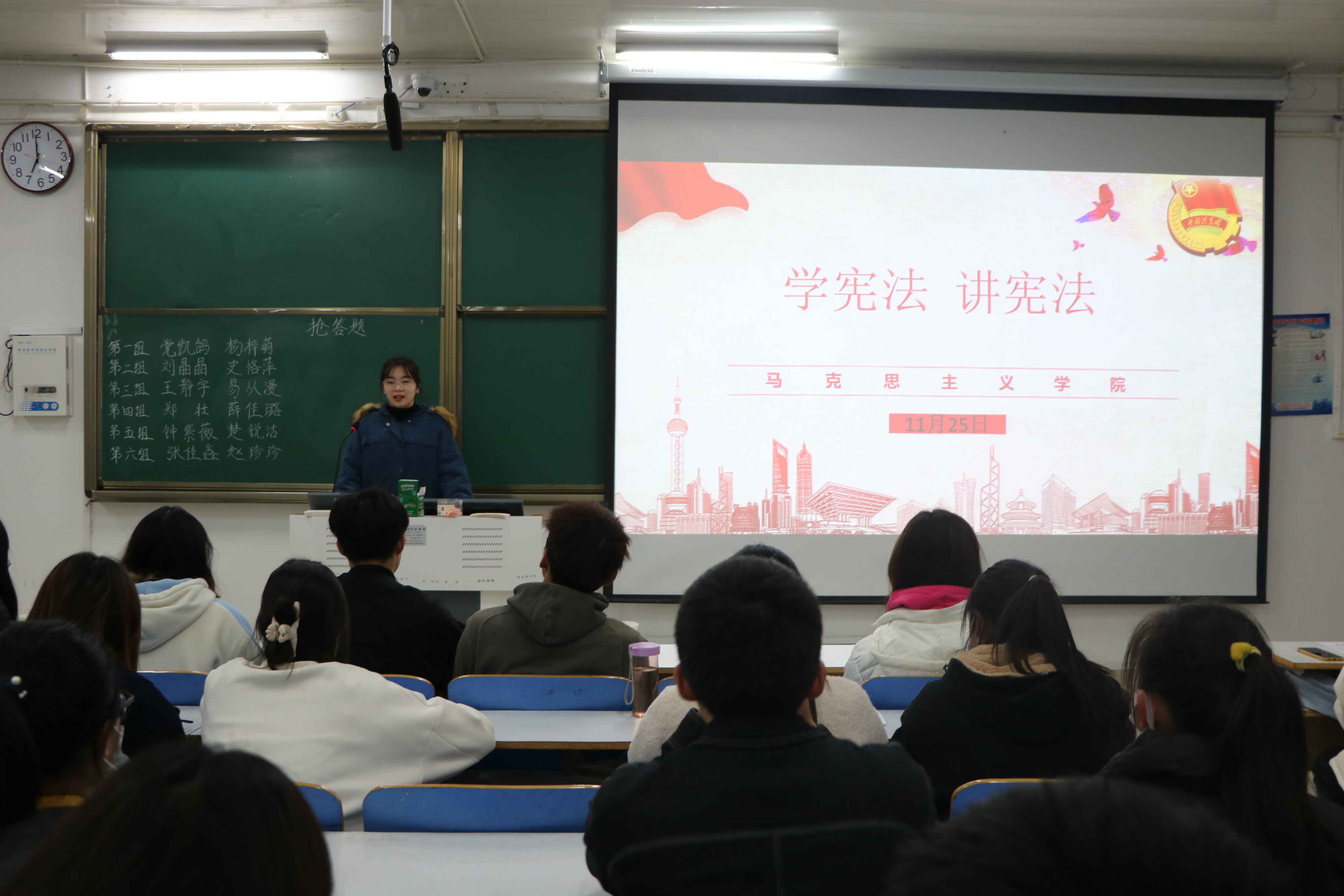 11月25日晚,德赢AC米兰官网在社科楼514教室举办“学宪法,讲宪法”知识竞赛决赛。德赢官网分团委副书记危依、主席团成员袁祖顺、文艺体育部和组织部全体成员及50多名参赛选手共同参与本次决赛。决赛由文体部负责人王晨主持。
