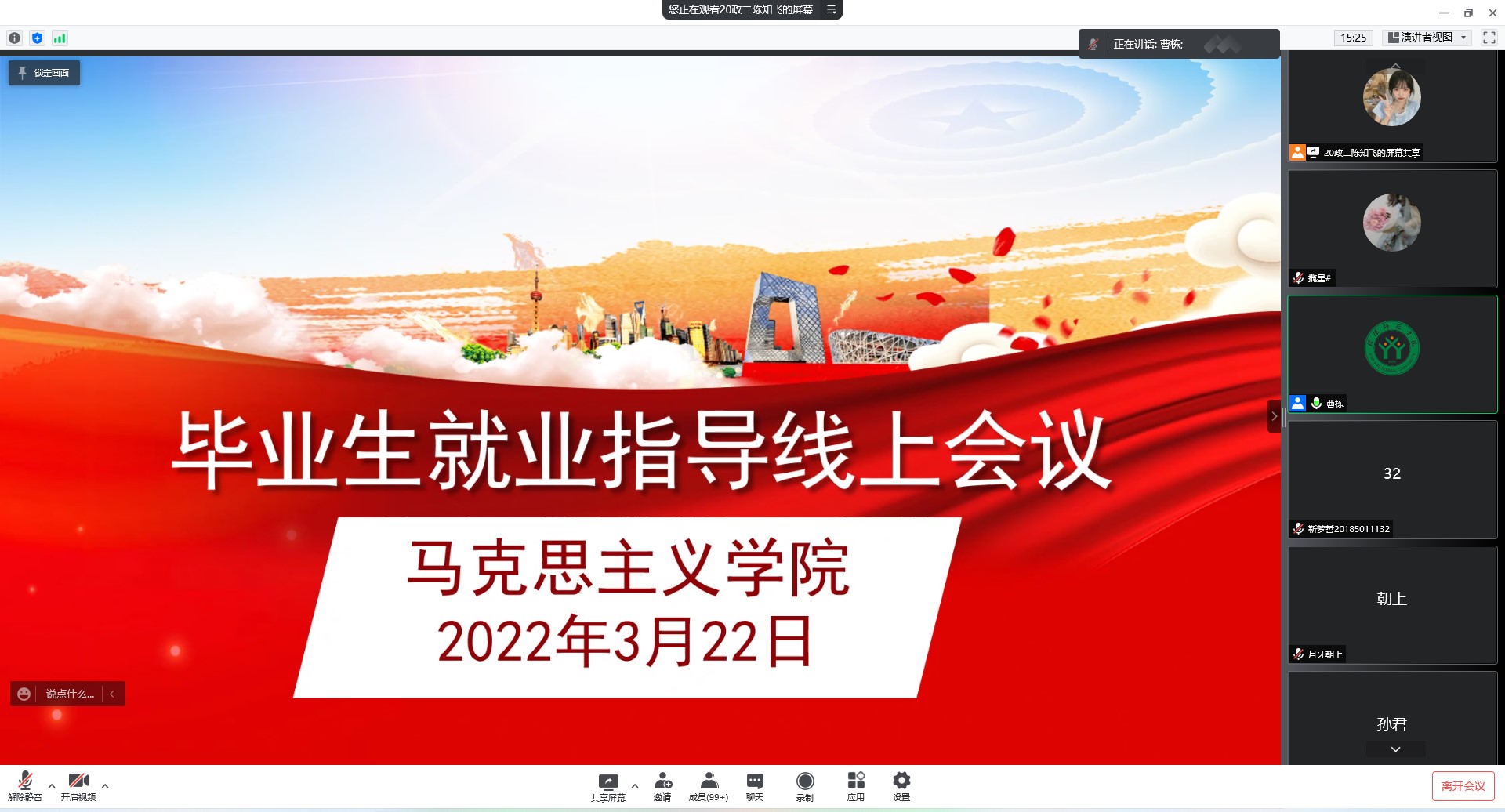 3月22日上午,德赢AC米兰官网在腾讯会议上召开毕业生就业指导线上会议。德赢官网团委书记曹栋、2018级辅导员张恬恬及2018级全体学生共同参加本次会议,会议由曹栋主持。