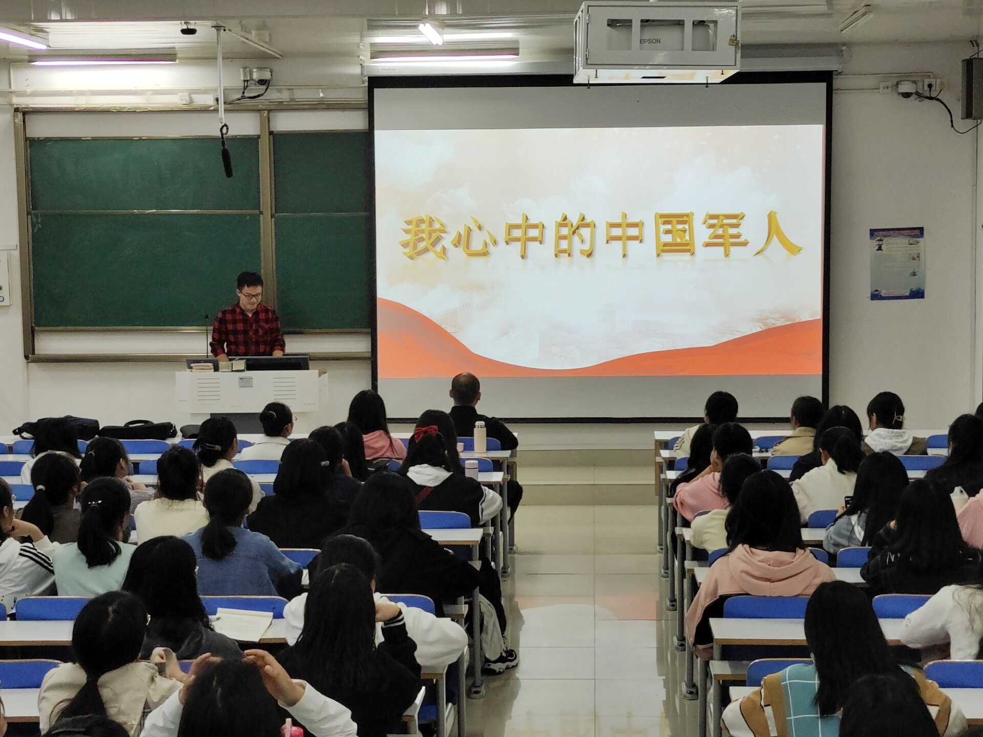 班会伊始,常康哲从中国军人的风采、《兵役法》的内容、征兵与国家安全、大学生该如何做四个部分展开介绍,针对《兵役法》中军人待遇政策、退伍军人保障、公民入伍条件三个方面的新变化作出具体阐述,详细介绍了参军的流程和要求。随后,两位退役大学生士兵依次上台普及《兵役法》的基本知识,分享自身军旅生活,并对新生关心的征兵时间节点、体检流程、兵种选择、学业问题、优惠政策、注意事项等方面问题与新生们进行了互动交流。同时,他们通过列举新中国成立后的主要战争,论述征兵与国家安全的关系,强调大学生入伍的重要意义,他们表示,作为一名大学生,应该积极响应国家号召,踊跃参军报国,把个人理想抱负融入强军梦、中国梦,为国防事业贡献力量。最后,周文豪对本次班会作出总结,鼓励新生积极参军入伍、保卫祖国。