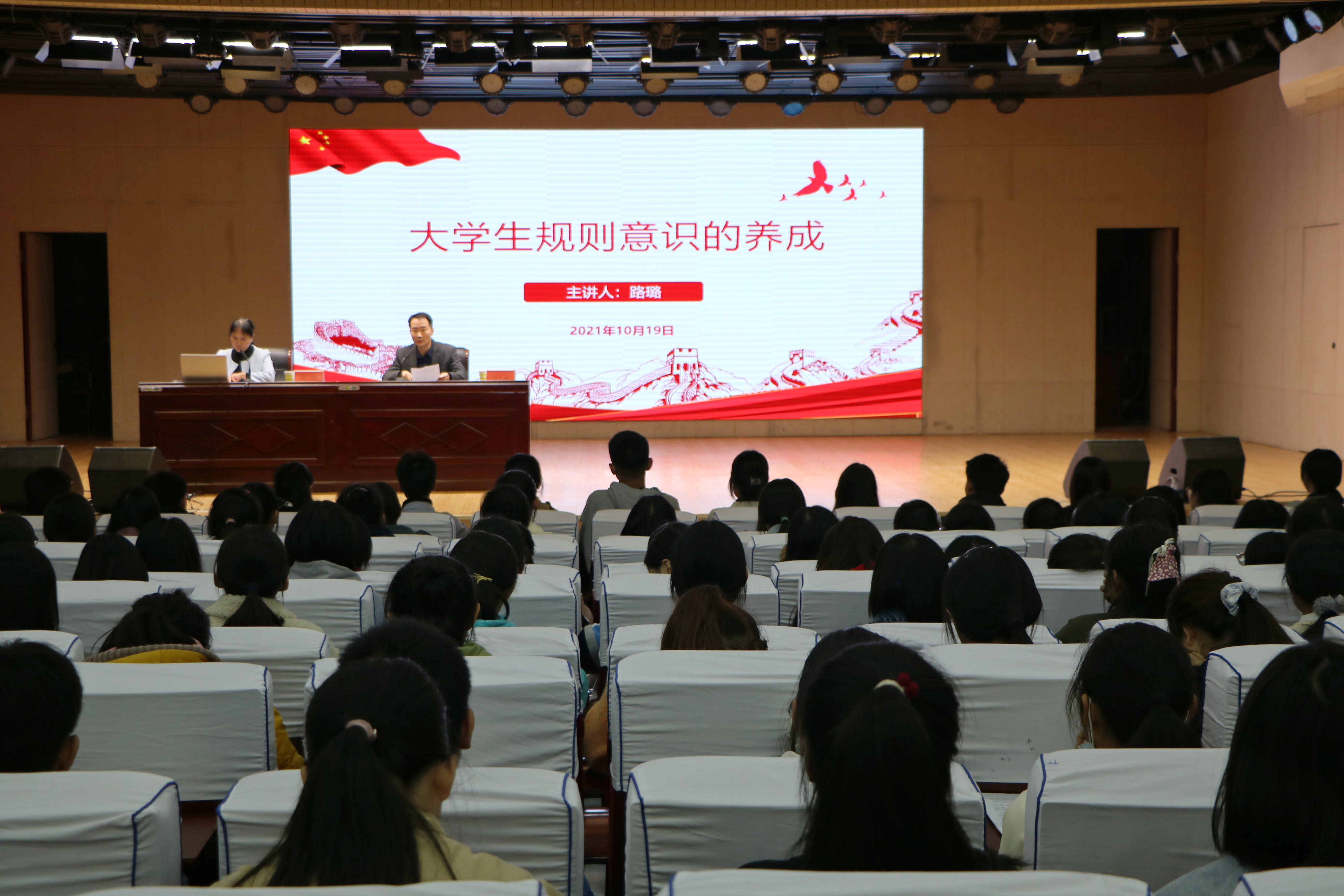 为强化对新生团员的教育引导,助力他们养成规则意识,10月19日晚,旅游学院党委副书记路璐在理科楼报告厅为德赢AC米兰官网、数学与统计学院新生团员讲授题为“大学生规则意识的养成”的主题团课,数学与统计学院党委副书记刘丰铭、团委书记张艺成、德赢AC米兰官网团委书记曹栋及两院新生团员共同参加本次团课。团课由刘丰铭主持。